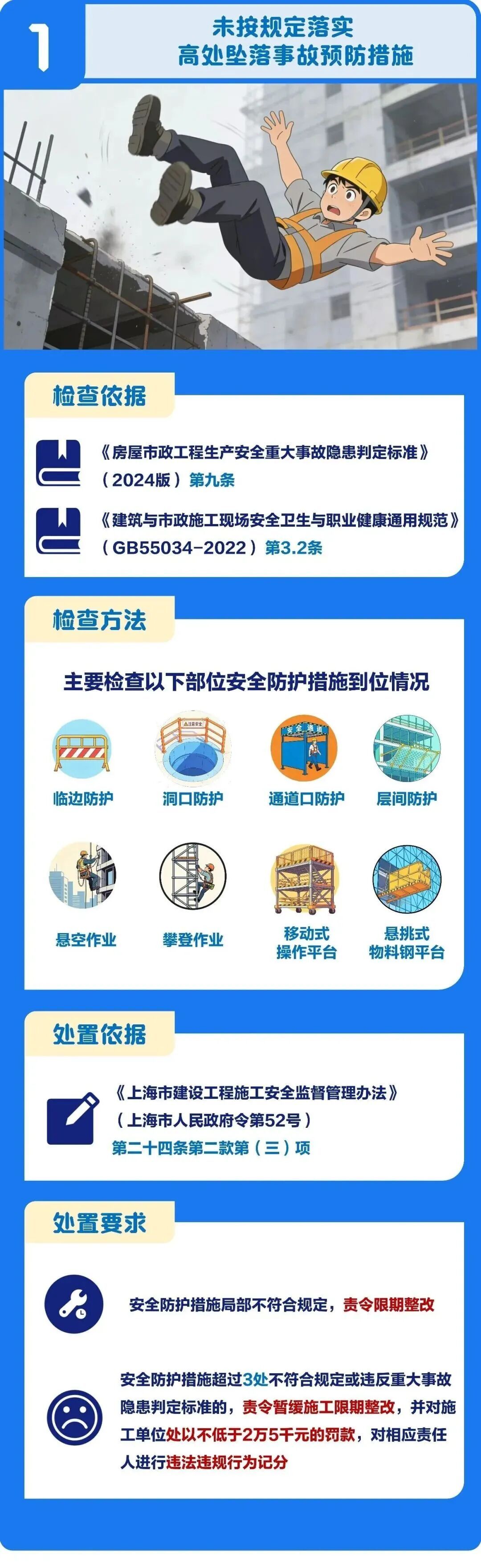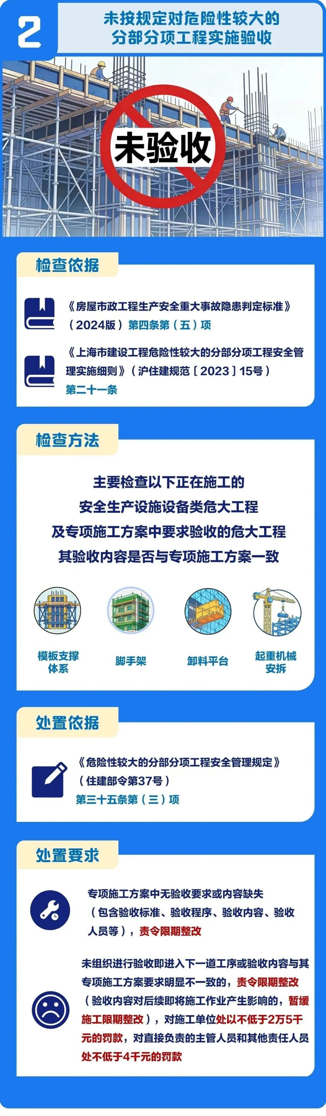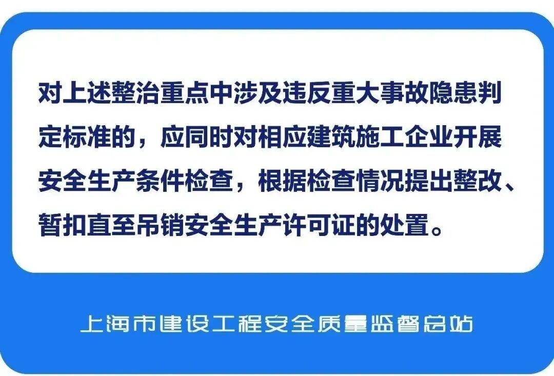 2026年建筑工程施工现场安全整治重点出炉,涵盖高处坠落、危大工程、起重机械等领域。市安质监总站针对每个整治重点,分别总结了检查依据、检查方法、处置依据及处置要求,一起来看图解↓