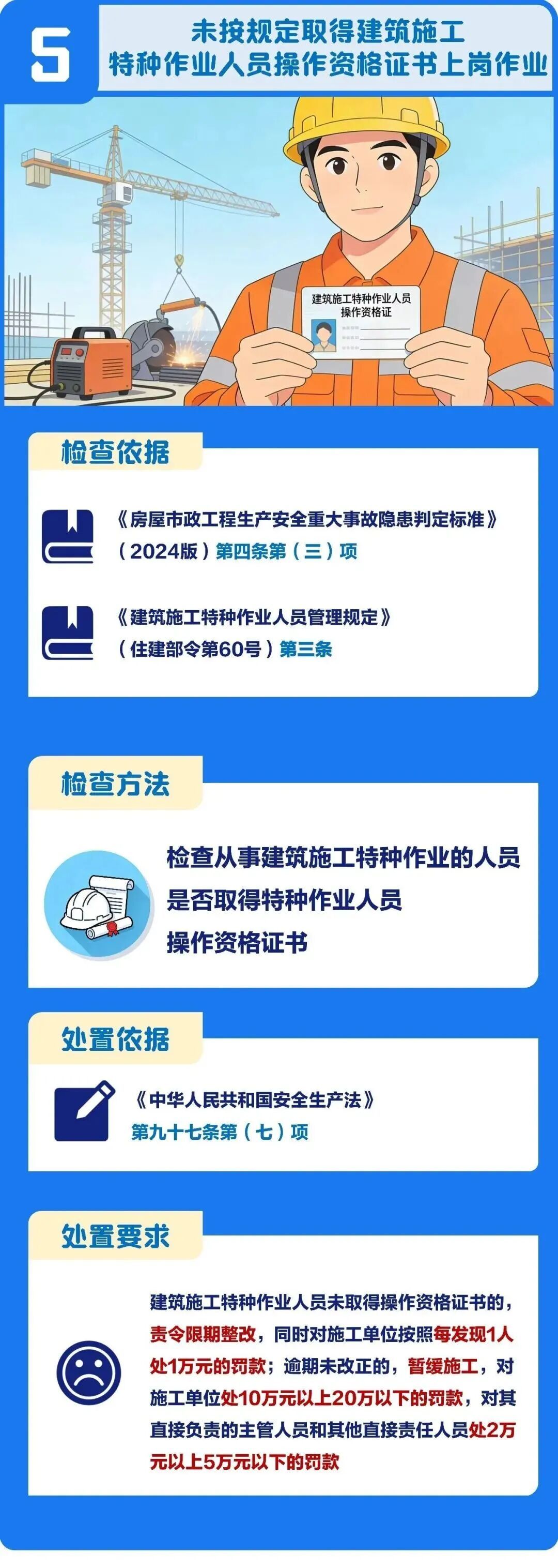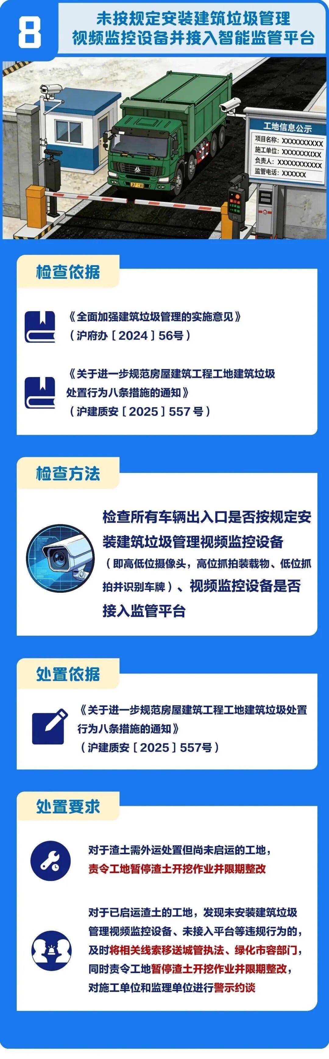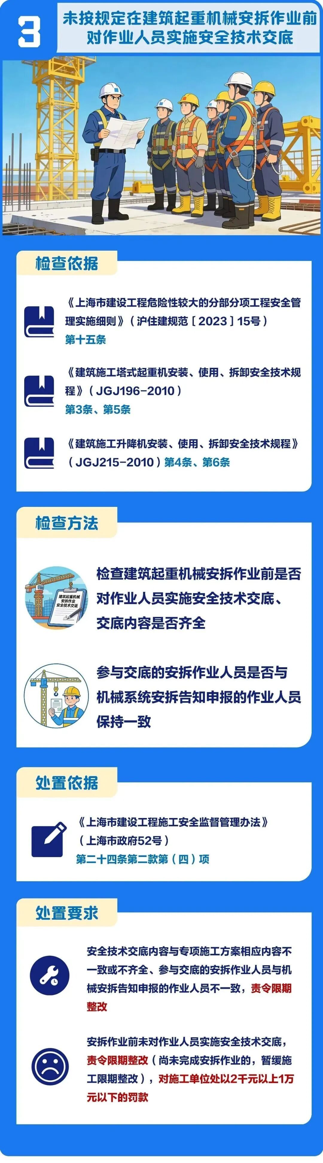 2026年建筑工程施工现场安全整治重点出炉,涵盖高处坠落、危大工程、起重机械等领域。市安质监总站针对每个整治重点,分别总结了检查依据、检查方法、处置依据及处置要求,一起来看图解↓