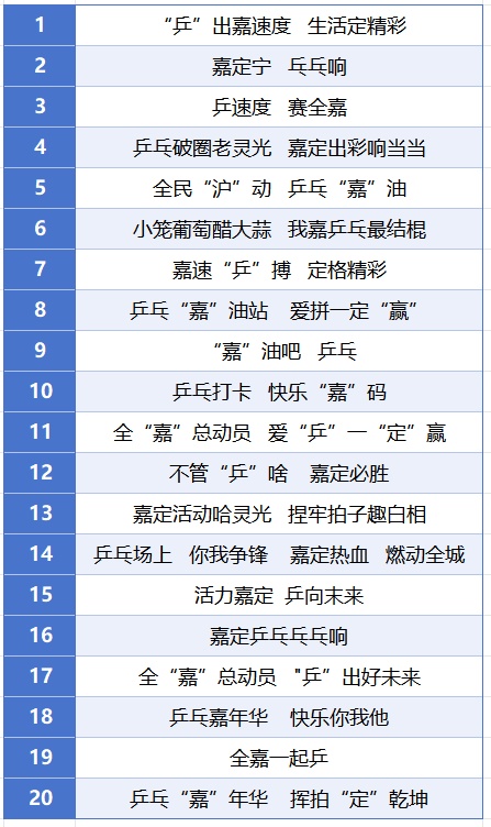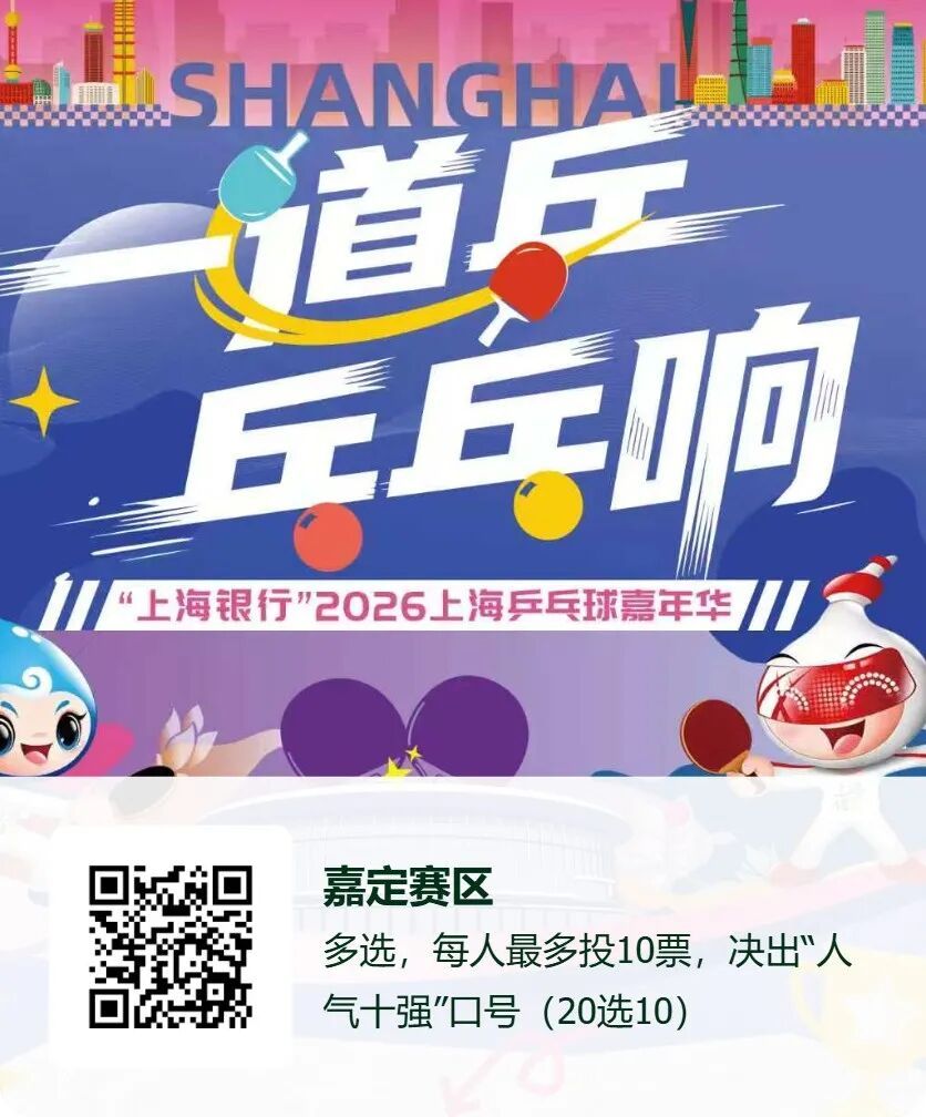 嘉定人注意,自2026上海乒乓球嘉年华嘉定赛区口号征集令发布以来,我们收到了无数脑洞大开的“嘉定梗”“乒乓魂”。