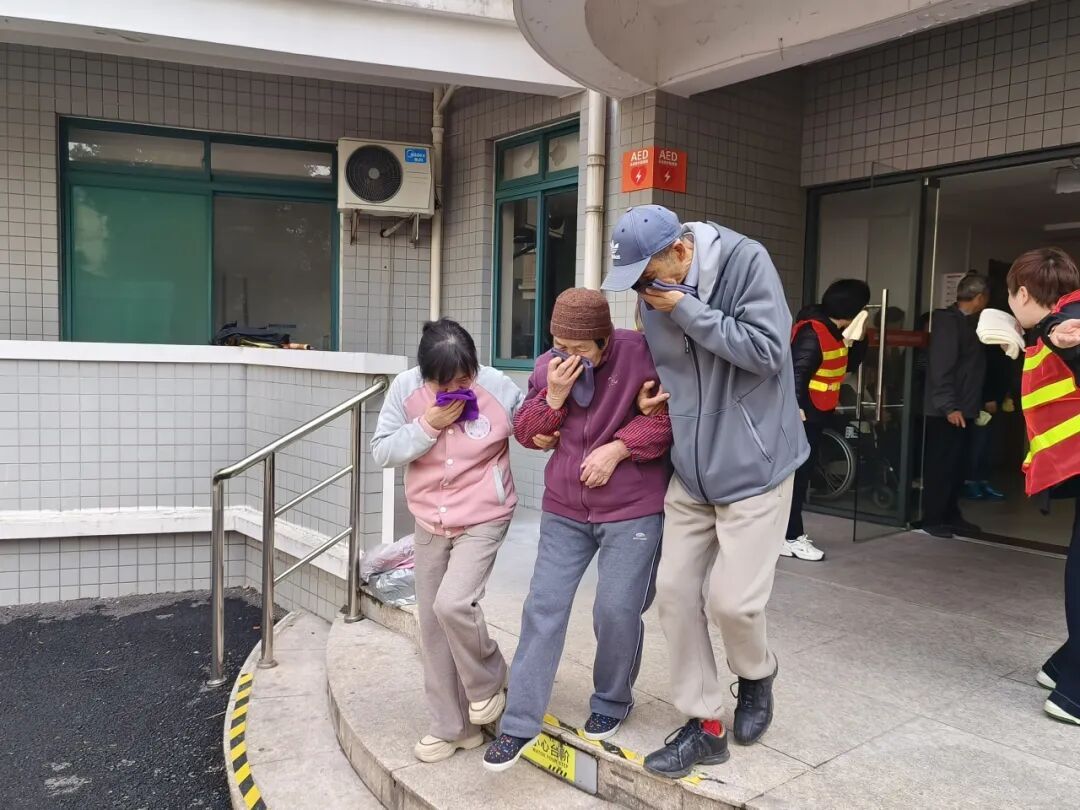 随着模拟警报声响起,演练正式开始,现场工作人员立即引导所有参与人员做好防护,全程用湿毛巾捂住口鼻、弯腰低姿,按照预定路线快速有序撤离至安全集合点。撤离过程中,大家听从指挥、相互照应,整体流程紧张而有序。