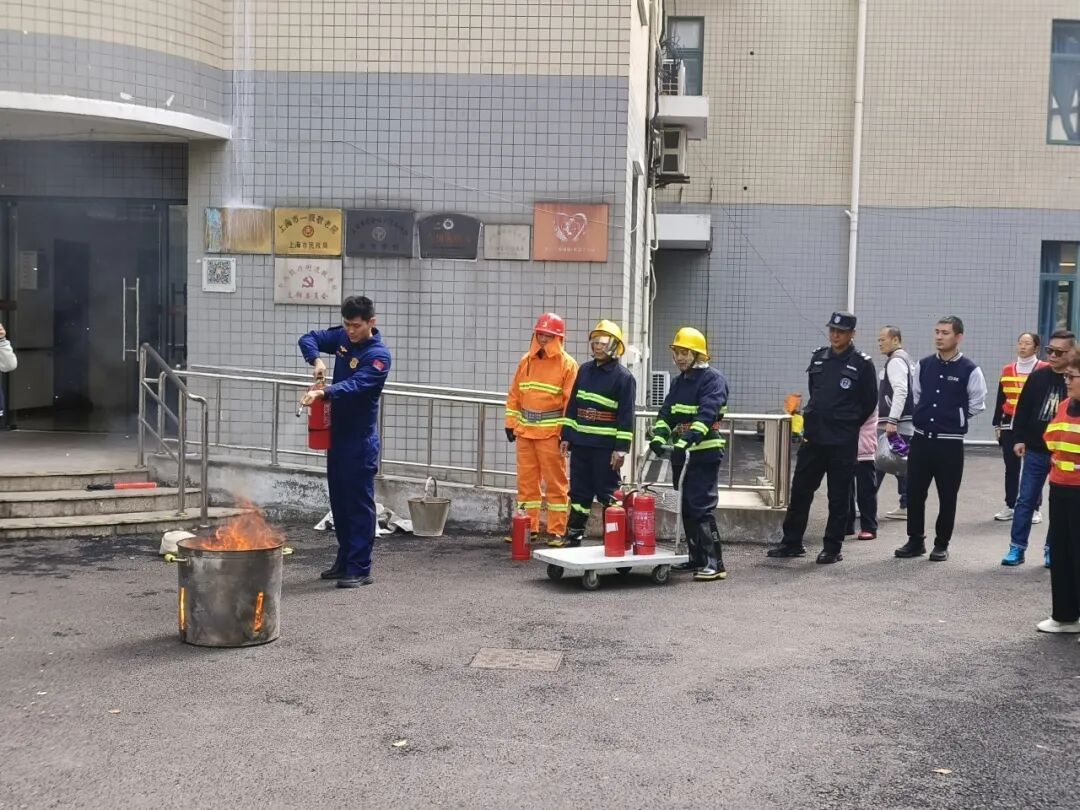 随后,消防员现场进行消防安全实操演示,细致讲解并示范干粉灭火器的正确使用方法,以及消防水带的快速连接、铺设与出水操作,用直观易懂的方式,让在场人员清晰掌握常用消防器材的使用技巧。