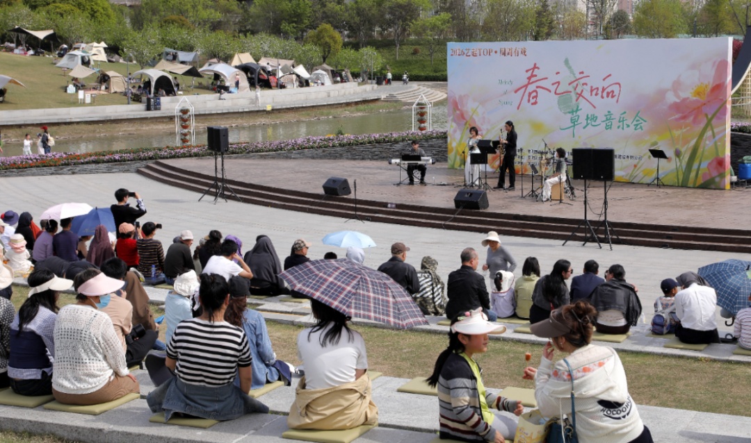 城市绿地不仅是生态空间,更可以成为拉动消费、丰富市民生活的新引擎。文化活动的持续举办让TOP中央公园真正“活”了起来,据统计,2025年全年TOP中央公园累计举办近60场活动,接待游客近百万人次;今年3月,公园单月客流量已达30万人次,较2月增长3倍。草地音乐会、露营经济与商圈消费相互赋能,这座公园里的春日生活还在继续,一条文商旅体展融合发展的链条也正在普陀区悄然成形。