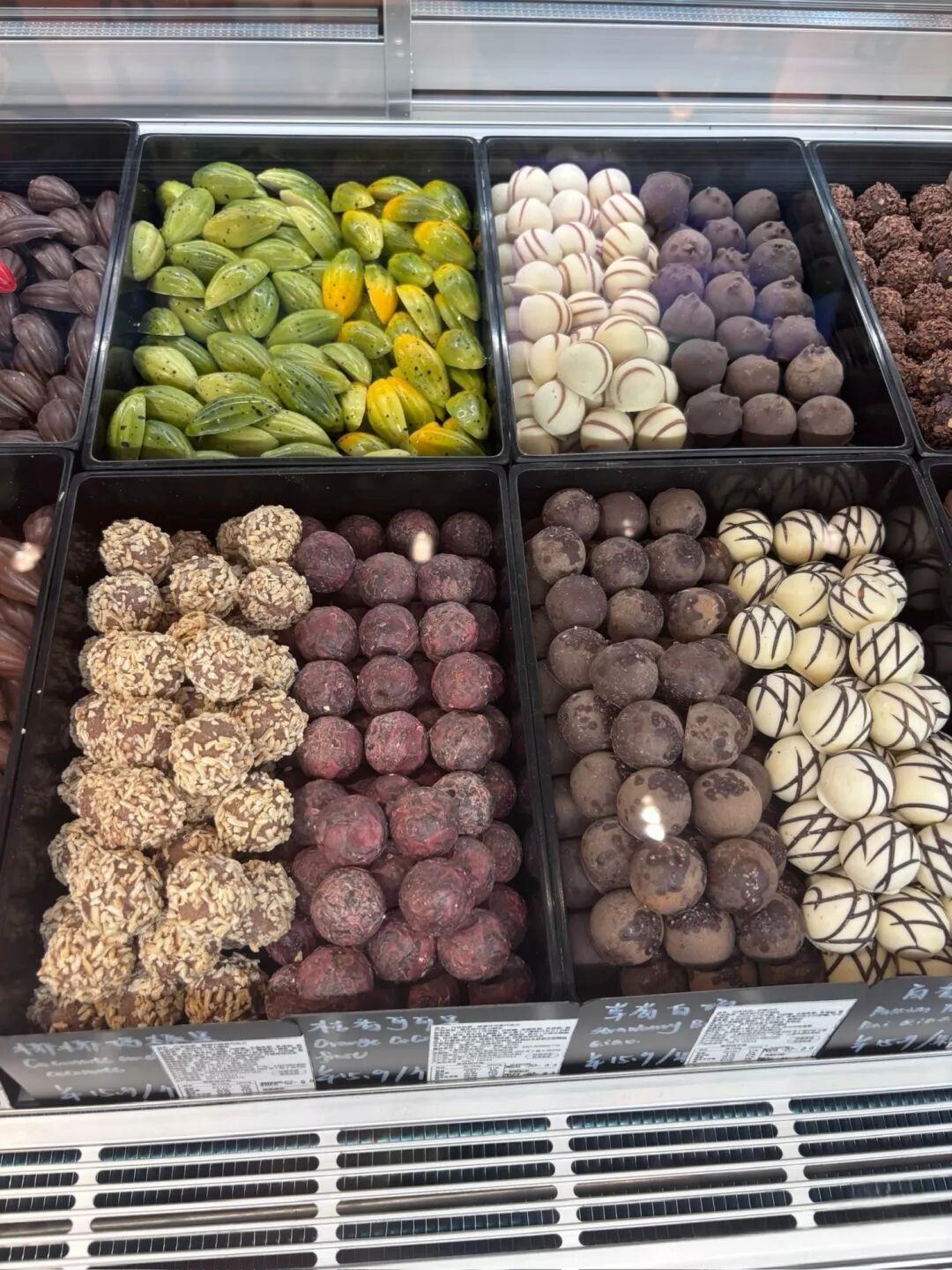 作为“巧克玩家”在田子坊的第二家门店,这家店从诞生起就带着巧思。推开店门,浓郁的巧克力香气扑面而来,冷柜里五颜六色的手工巧克力圆球像一颗颗小宝石,而那些带着创意包装的巧克力,才是真正的主角。在这个大家都追求极致甜腻的时代,“巧克玩家”却像个固执的极客,死磕着可可豆原本的风味,这里没有千篇一律的牛奶巧克力,取而代之的,是来自世界各地的单一产区黑巧。