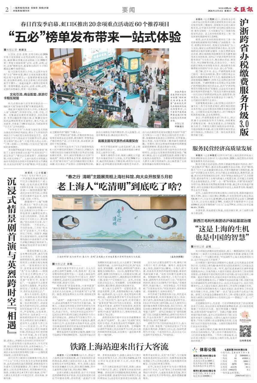 清明与寒食节有什么关系?古人为什么要在清明节插柳、斗鸡、放纸鸢?老上海有哪些特色清明节俗……走进上海社会科学馆新亮相的“我们的节日·春之行 清明”主题展览,沉浸式互动造景吸引市民了解清明的来源、演变与习俗。
