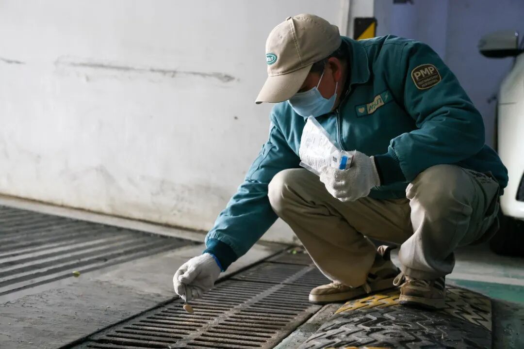 除了地面的捕蝇防控,工作人员还针对地下车库潮湿阴暗的特点,全方位开展了积水清理、药物投放和喷洒消杀,不放过任何一处卫生死角,从源头上遏制蚊虫孳生的可能。