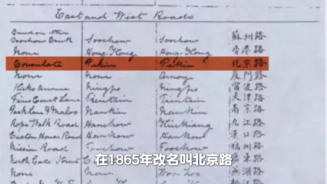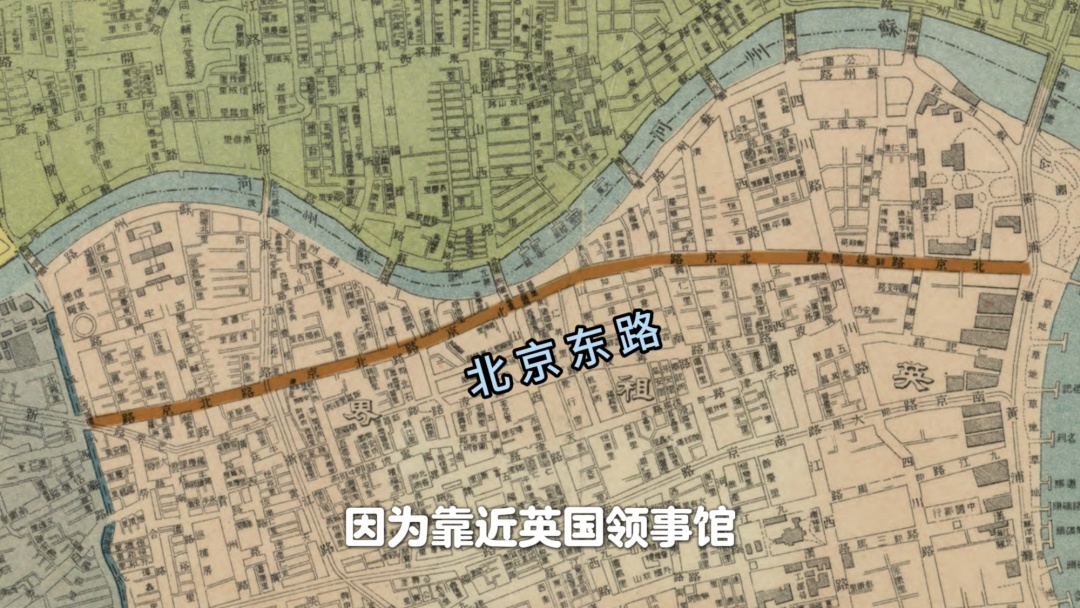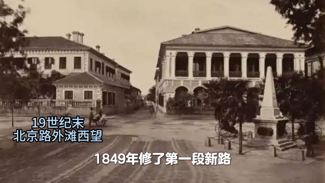北京东路最初是上海开埠时通往黄浦江的土路之一。1849年修了第一段新路,用黄沙、碎石和泥土压平当路面,因为靠近英国领事馆,最早叫“领事馆路”。后来路越修越长,1854年铺了煤渣路,1865年改名“北京路”,到1876年已经铺成碎石头路,1920年代又改成沥青路,1945年正式定名“北京东路”。