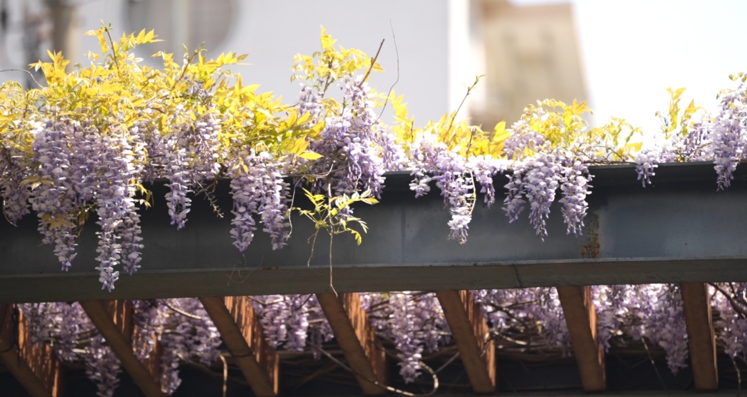 紫藤:垂坠如瀑的紫色梦幻,香气袭人。