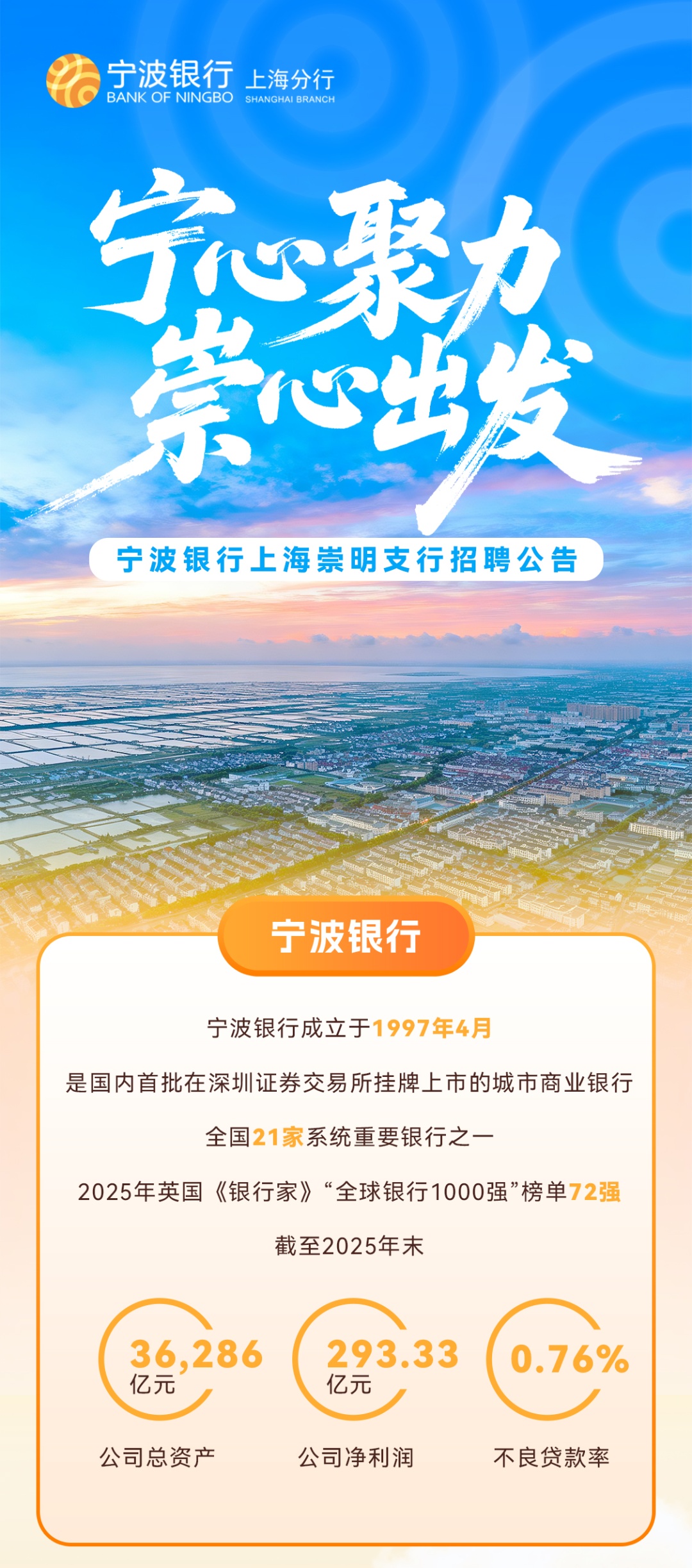 宁波银行上海崇明支行招聘公告