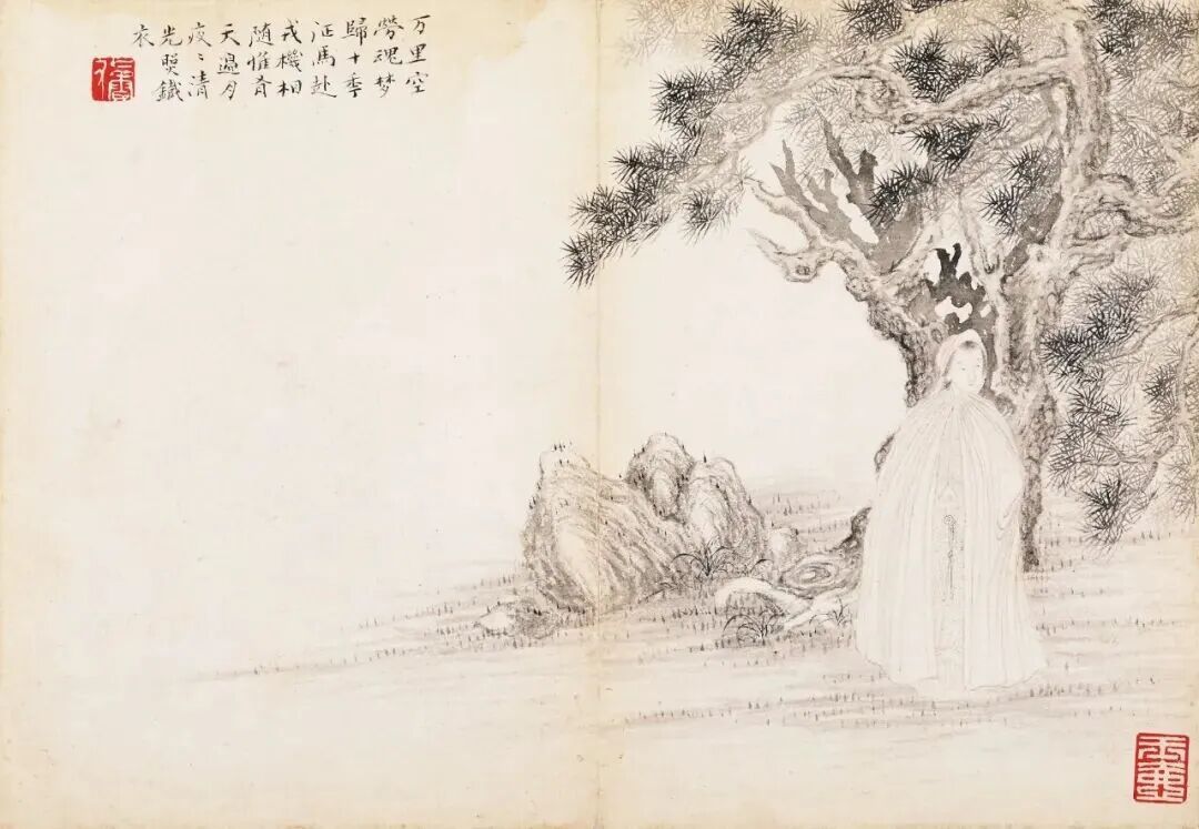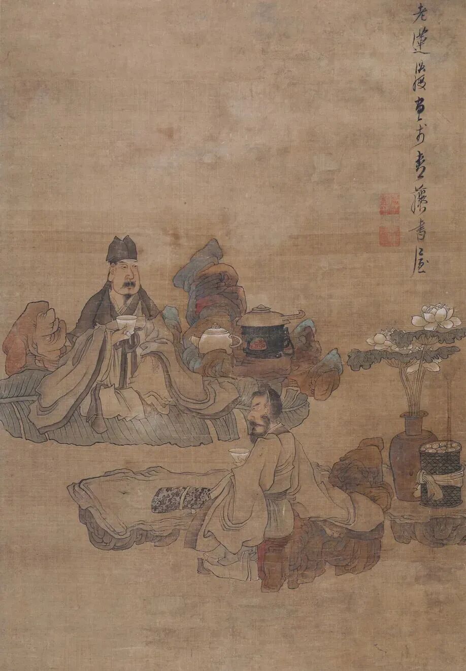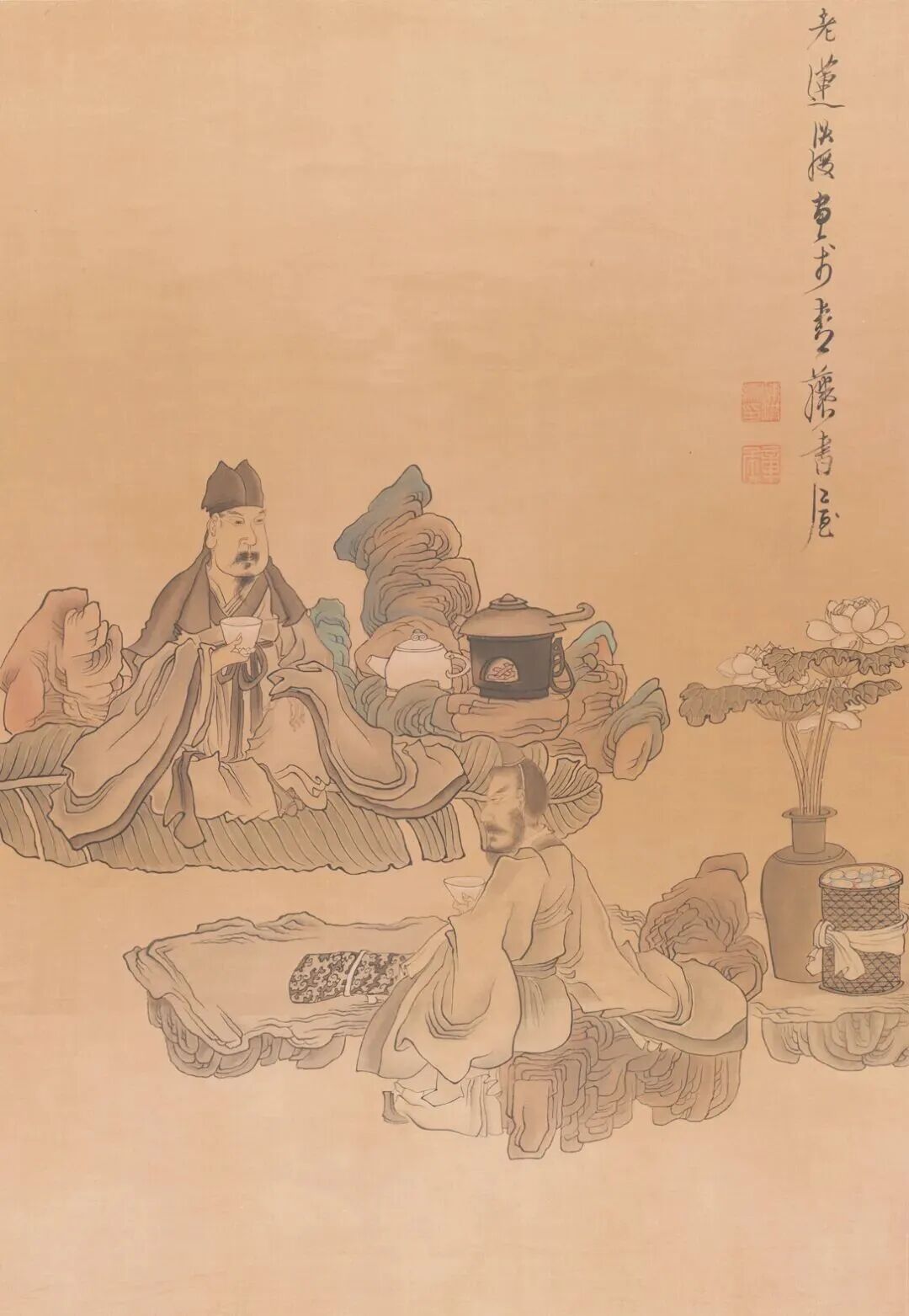 明 陈洪绶 停琴品茗图 纵76厘米 横53厘米 绢本设色