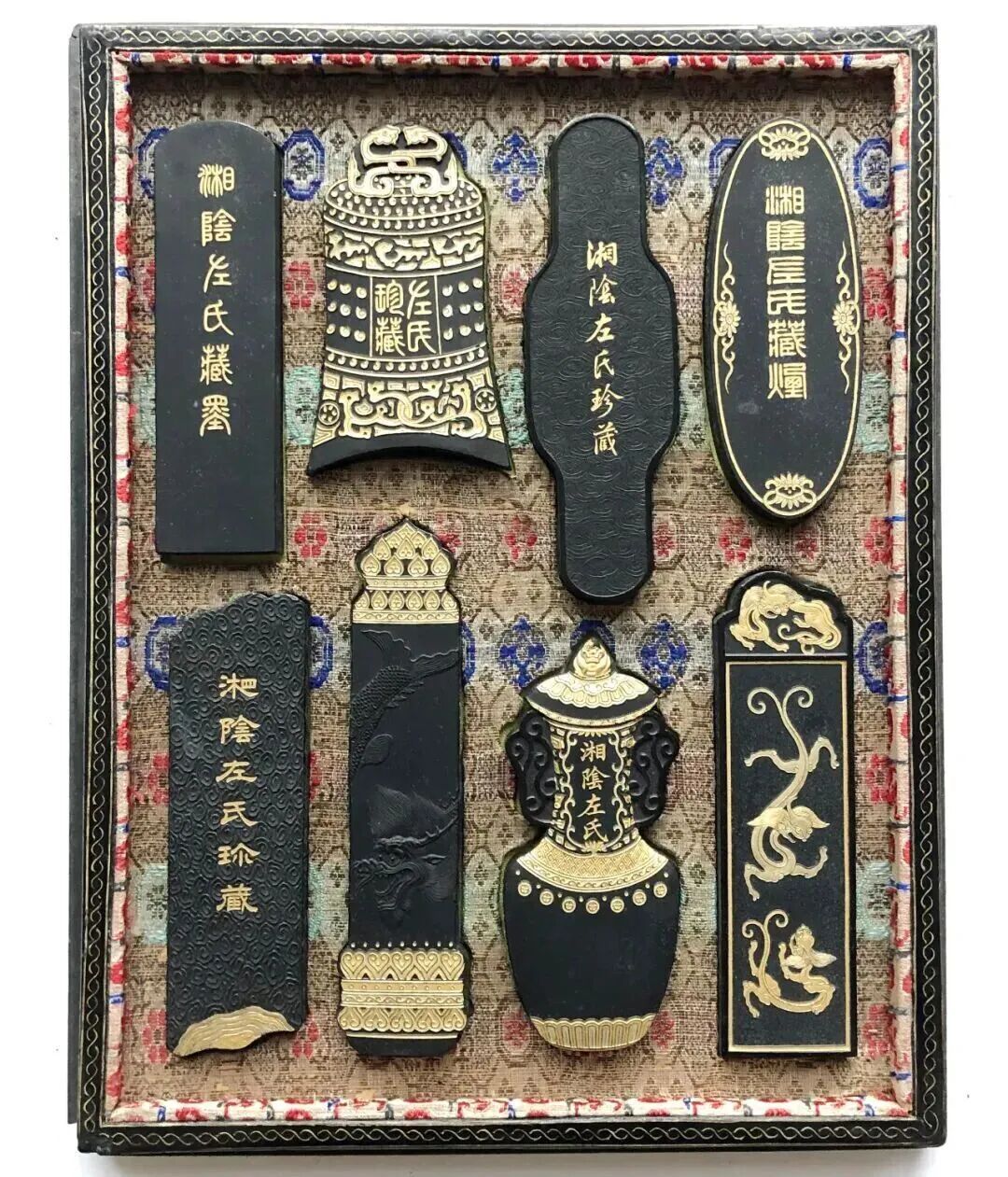 清 左宗棠定制八宝奇珍墨 一盒八锭 尺寸不一 漆盒装