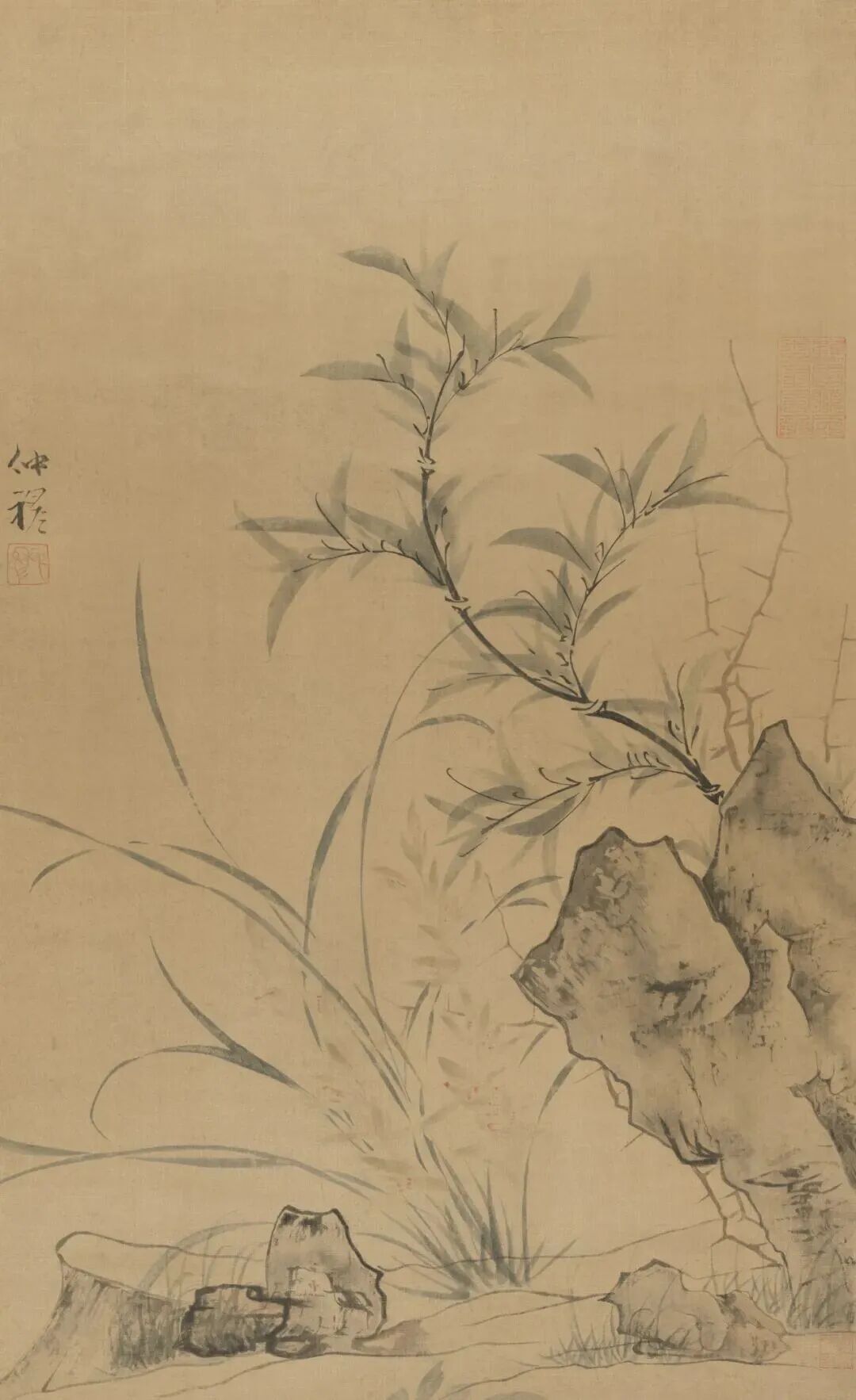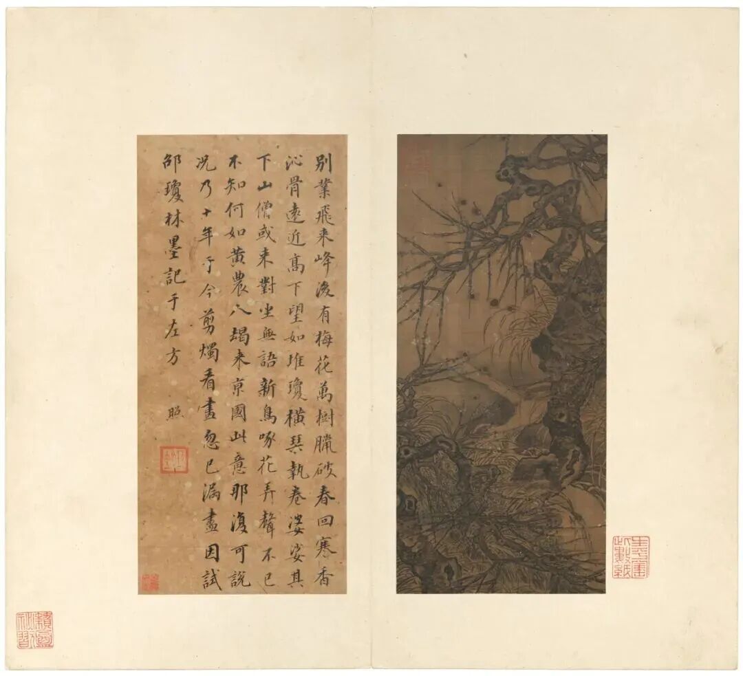 宋 马麟 古涧寒梅图册 纵19.8厘米 横9厘米 绢本设色