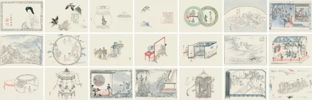清 改琦 白描十二美人图册(十二开选七) 纵20厘米 横29厘米 纸本水墨