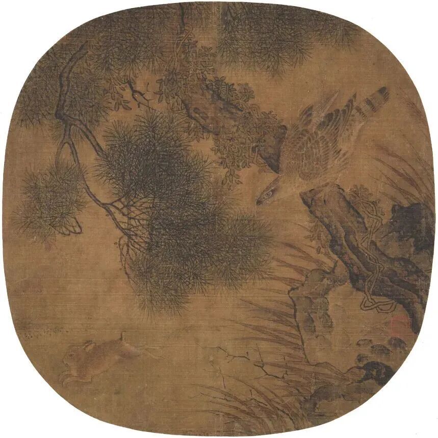 宋人画册 松鹰搏兔图 纵24厘米 横25厘米 绢本设色