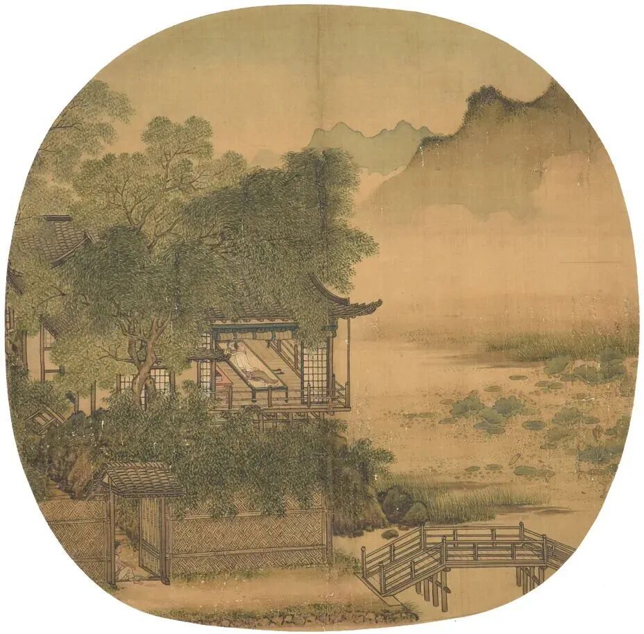 宋人画册 高阁消夏图 纵26厘米 横27厘米 绢本设色