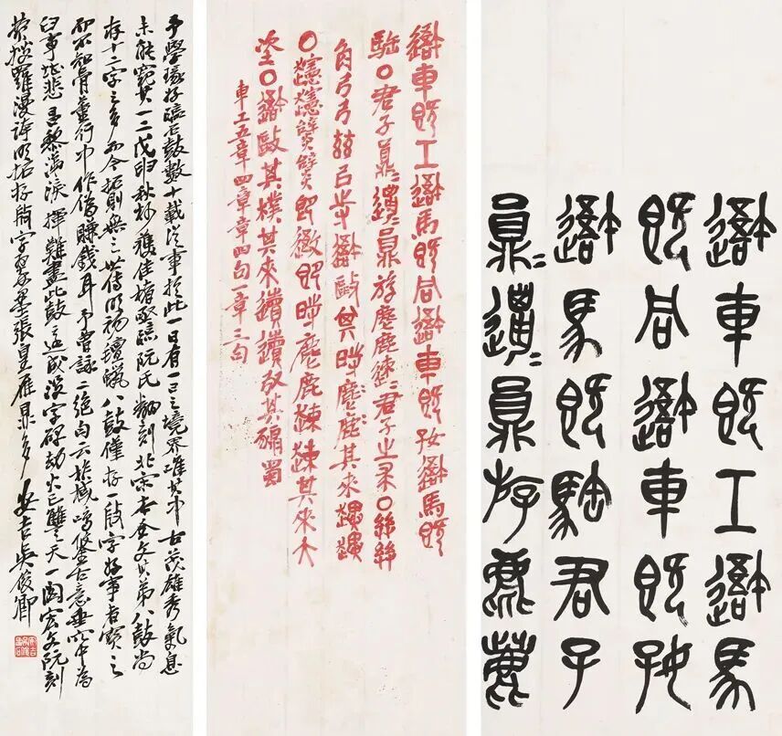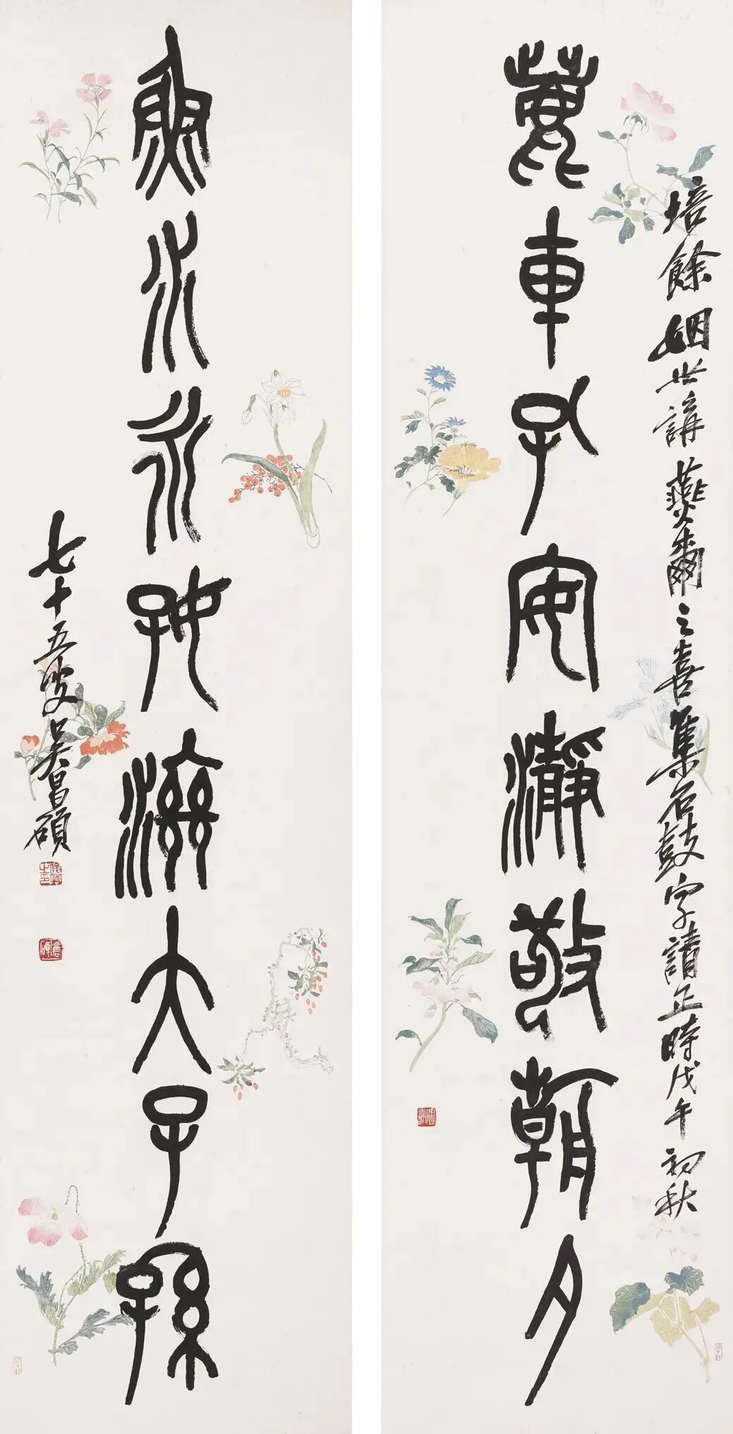 吴昌硕 篆书八言联 纵137厘米 横33厘米 纸本水墨