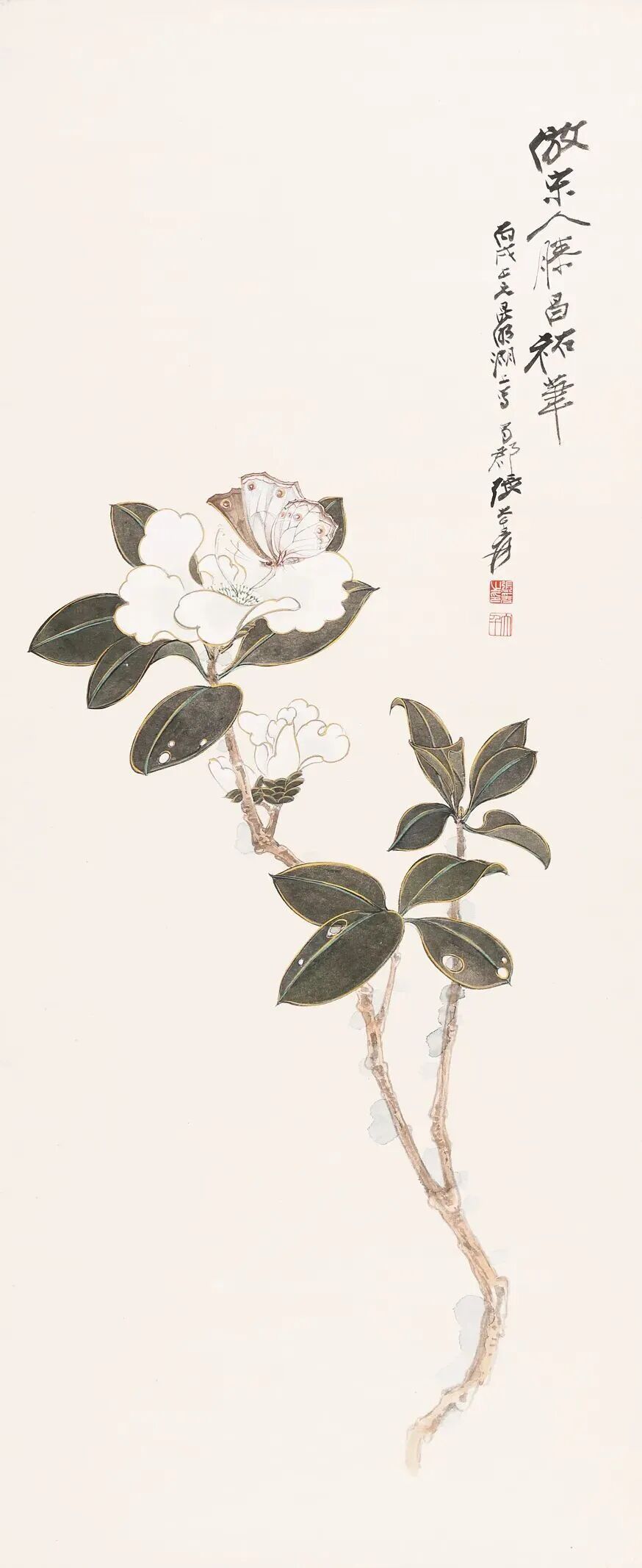 张大千 白山茶 纵96厘米 横39厘米 纸本设色
