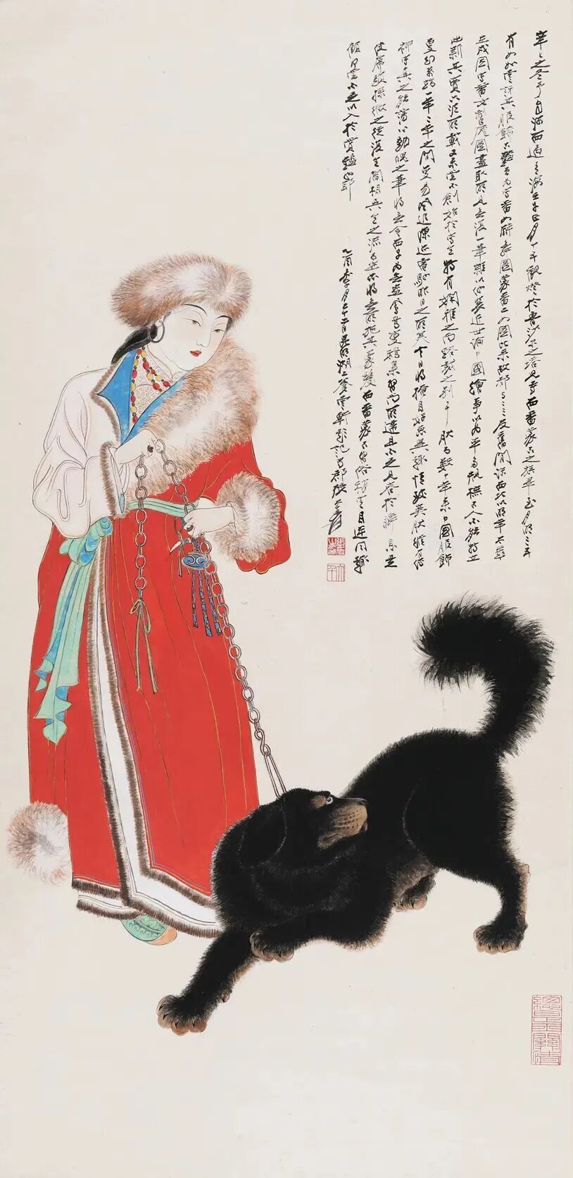 张大千 番女掣厖图 纵93厘米 横45厘米 纸本设色