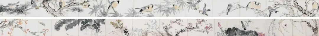 江寒汀 翎毛草虫双面册 纵11厘米 横192厘米 纸本设色