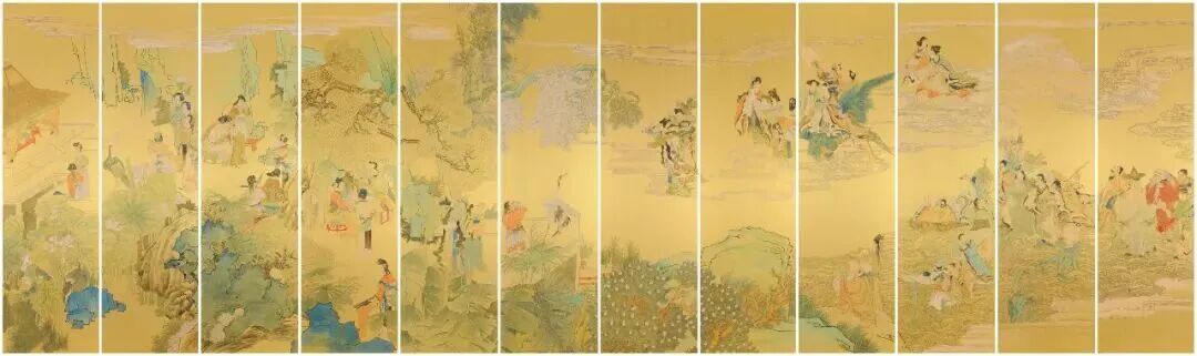 木版水印 任伯年群仙祝寿图 纵209厘米 横59.5厘米 通景十二屏