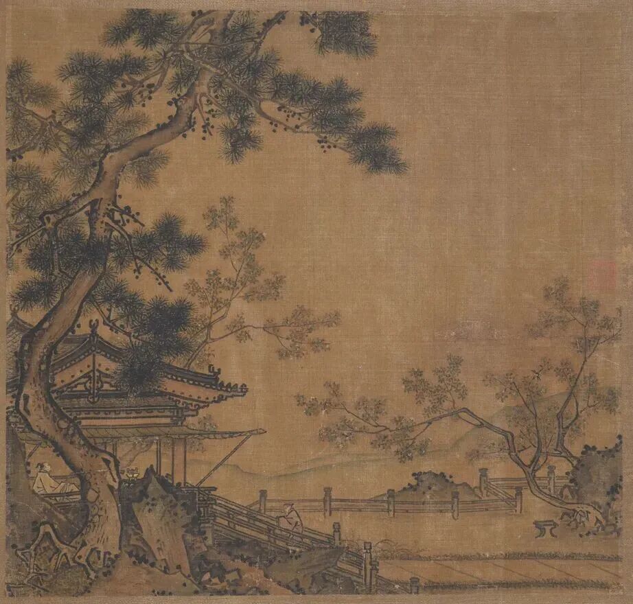 宋人画册 松堂访友图 纵24厘米 横25厘米 绢本设色