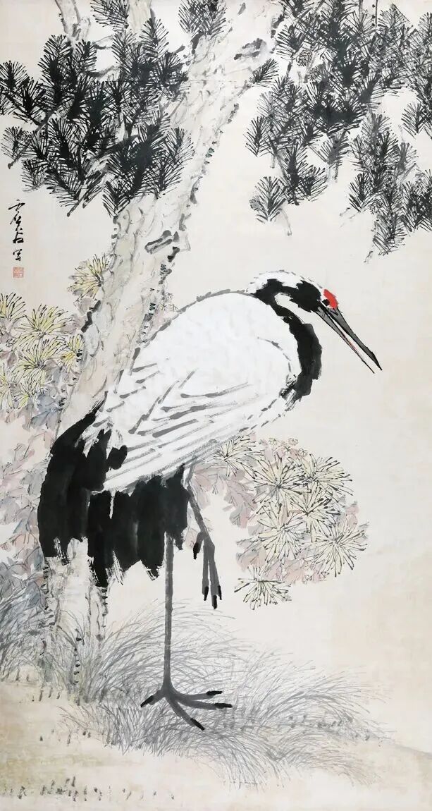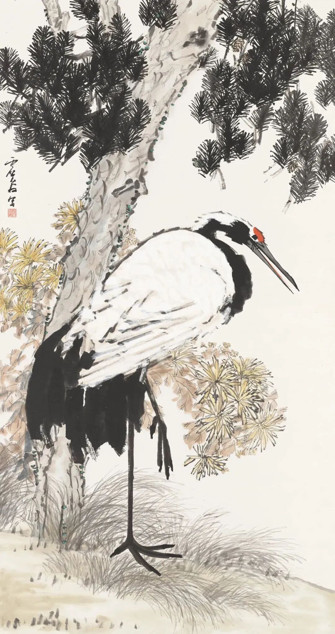 木版水印 虚谷松鹤长寿 纵120厘米 横63.7厘米 纸本设色