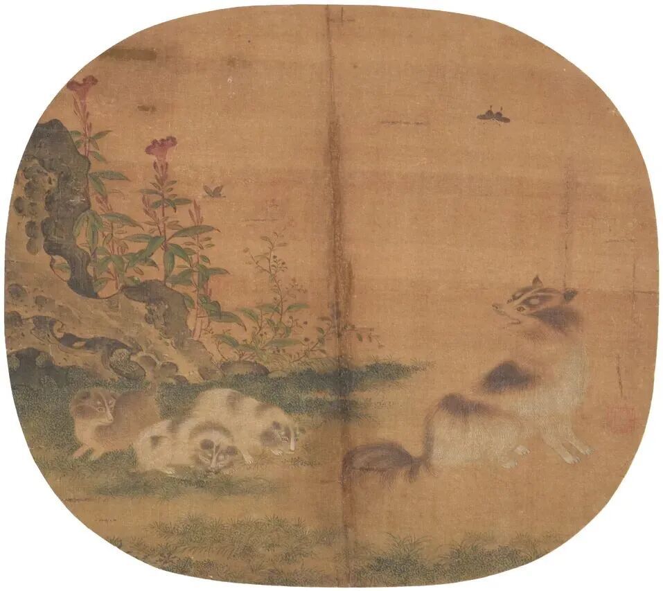 宋人画册 乳犬戏蝶图 纵24厘米 横27厘米 绢本设色