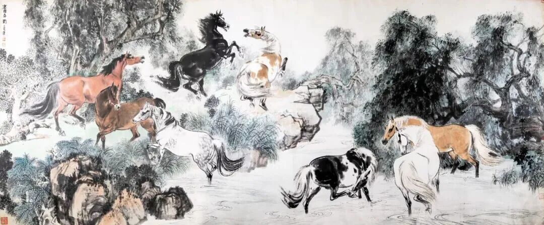 刘旦宅 八骏图 纵141厘米 横367厘米 纸本设色