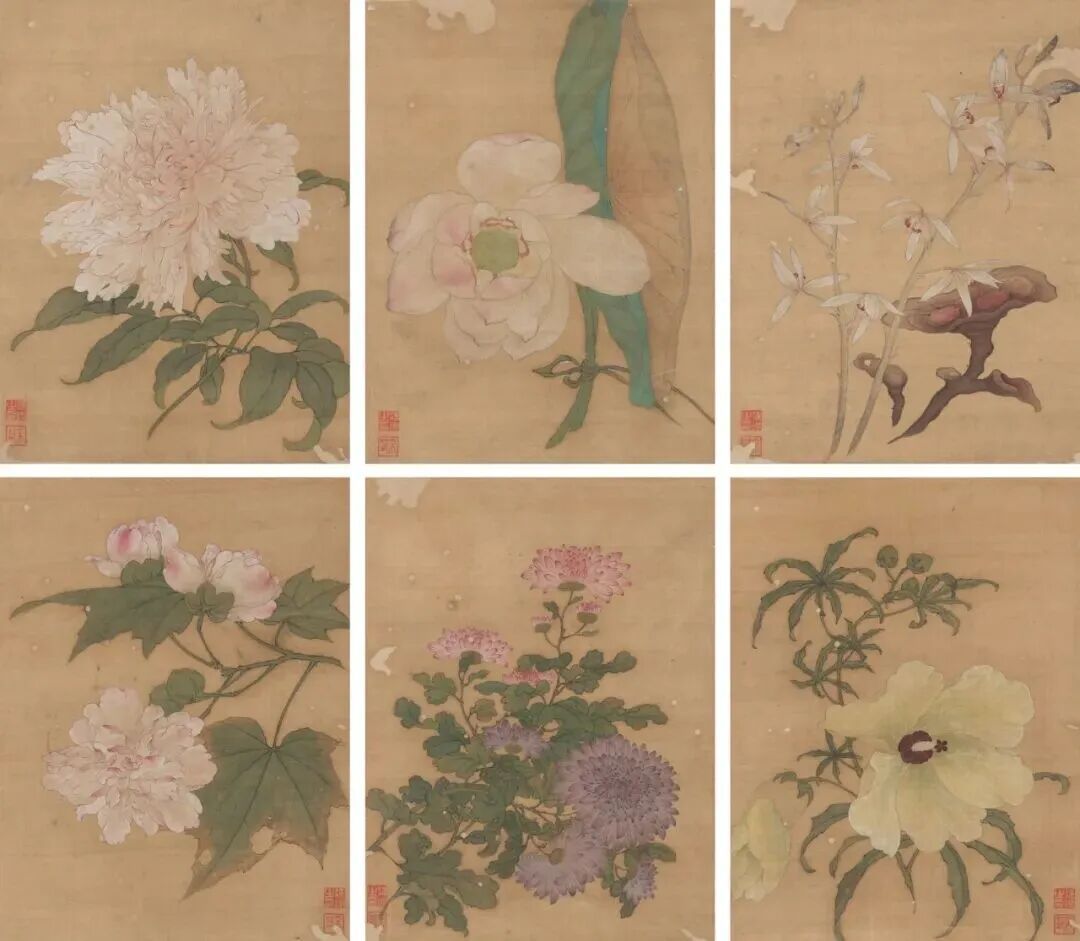 清 徐玟 花鸟册(十二选六)纵26厘米 横19厘米 绢本设色