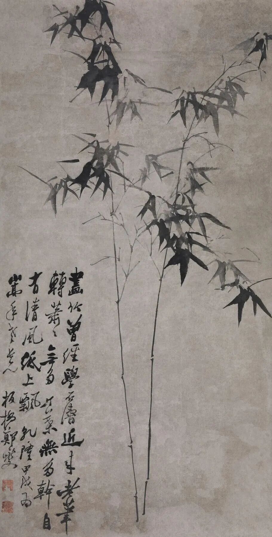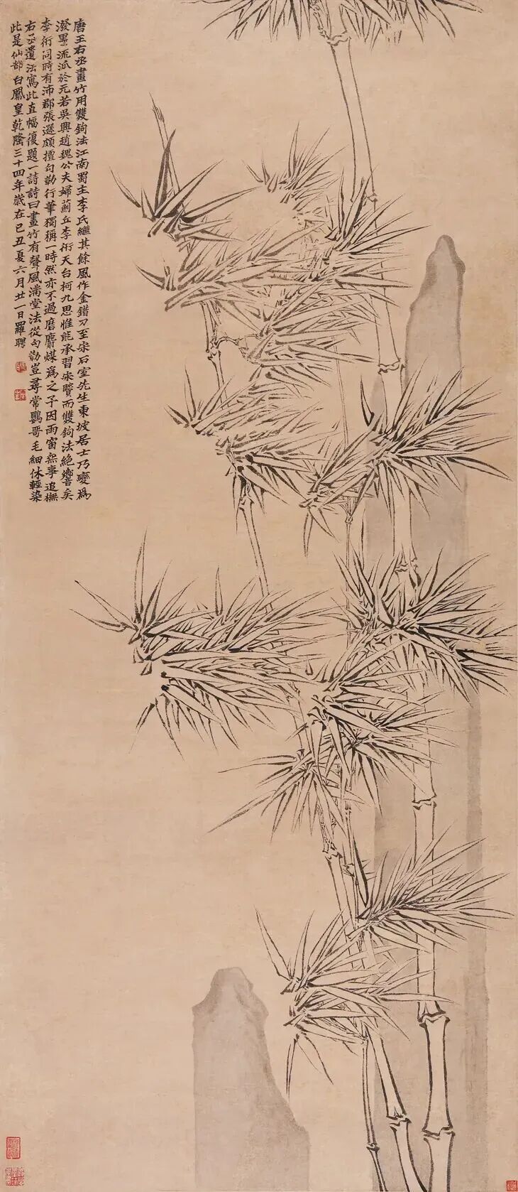 清 罗聘 双钩竹图 纵125厘米 横55厘米 纸本设色