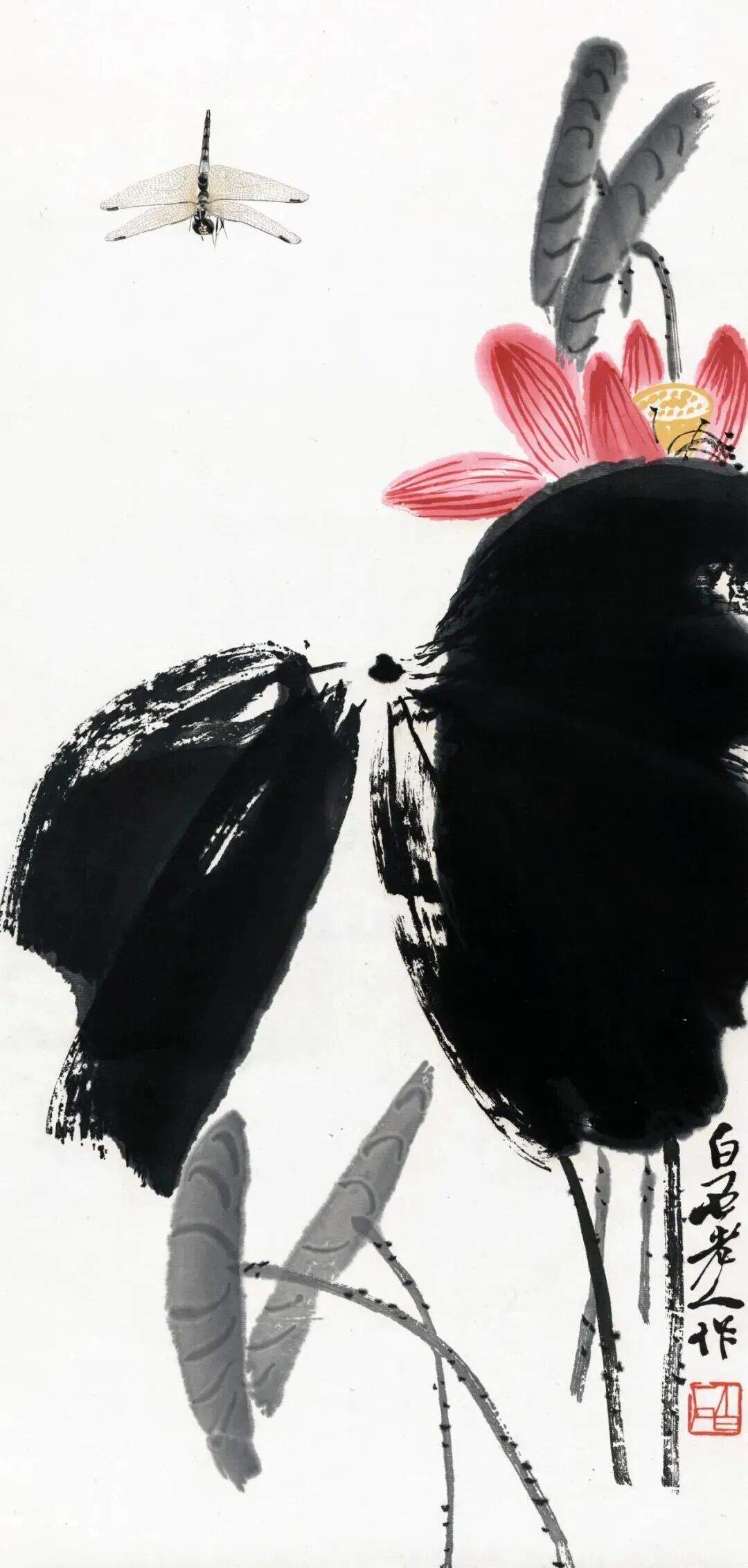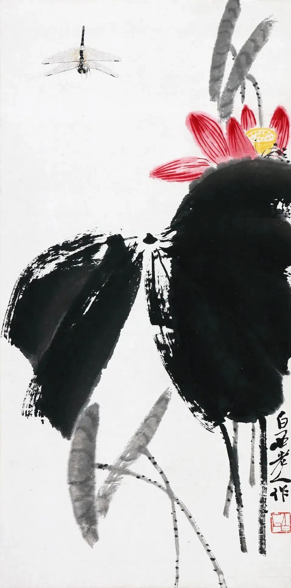 齐白石 荷花蜻蜓图(原作) 纵68厘米 横34厘米 纸本设色