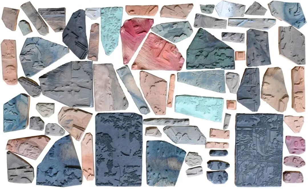 木版水印 宋人消夏图(附套印宋人消夏图的66块雕版)纵24.5厘米 横15.7厘米 绢本设色
