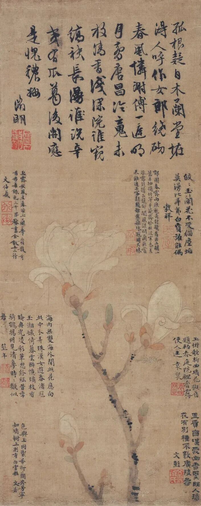 明 文徵明 玉兰小景图 纵40厘米 横16厘米 绢本设色