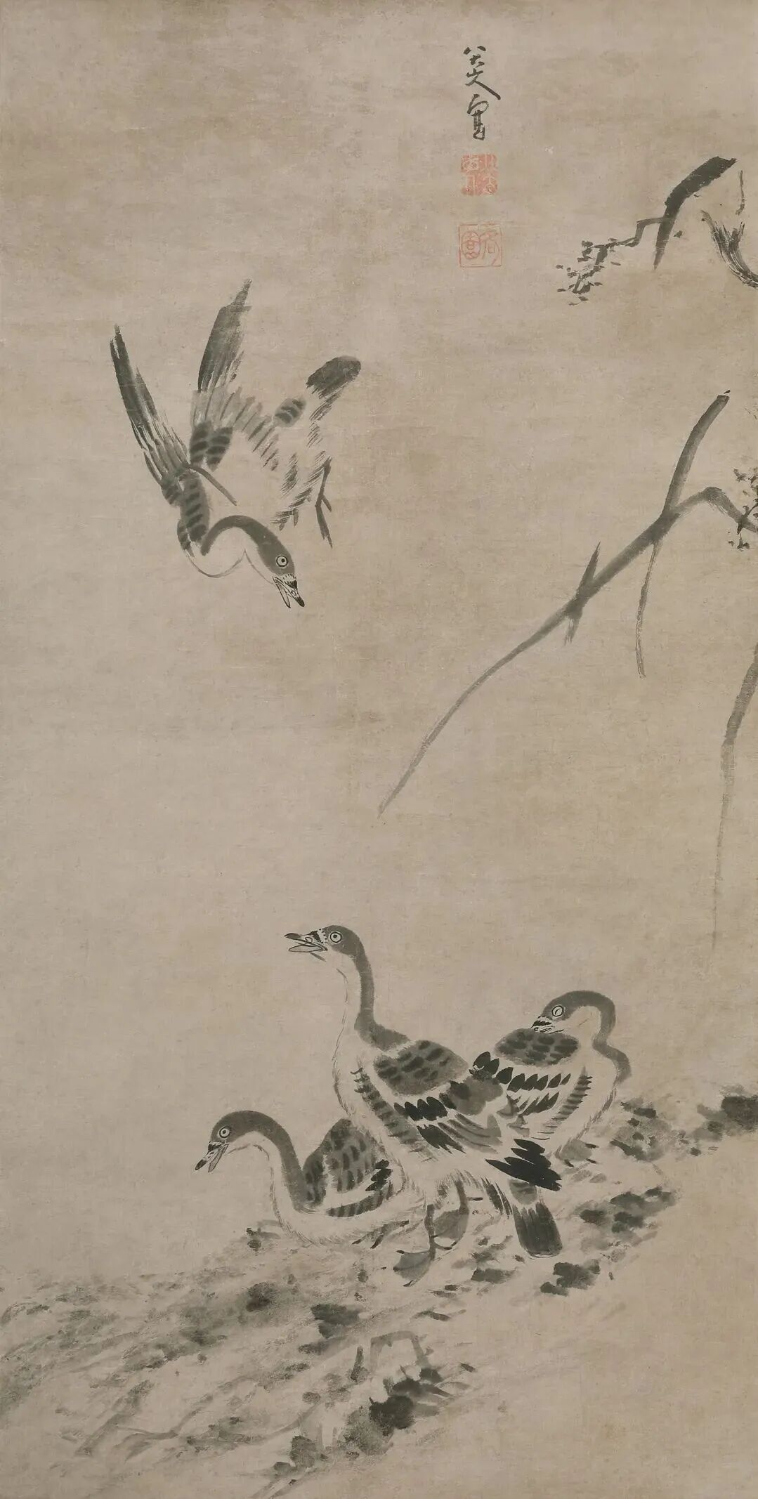 清 八大山人 芦雁图 纵120厘米 横60厘米 纸本水墨