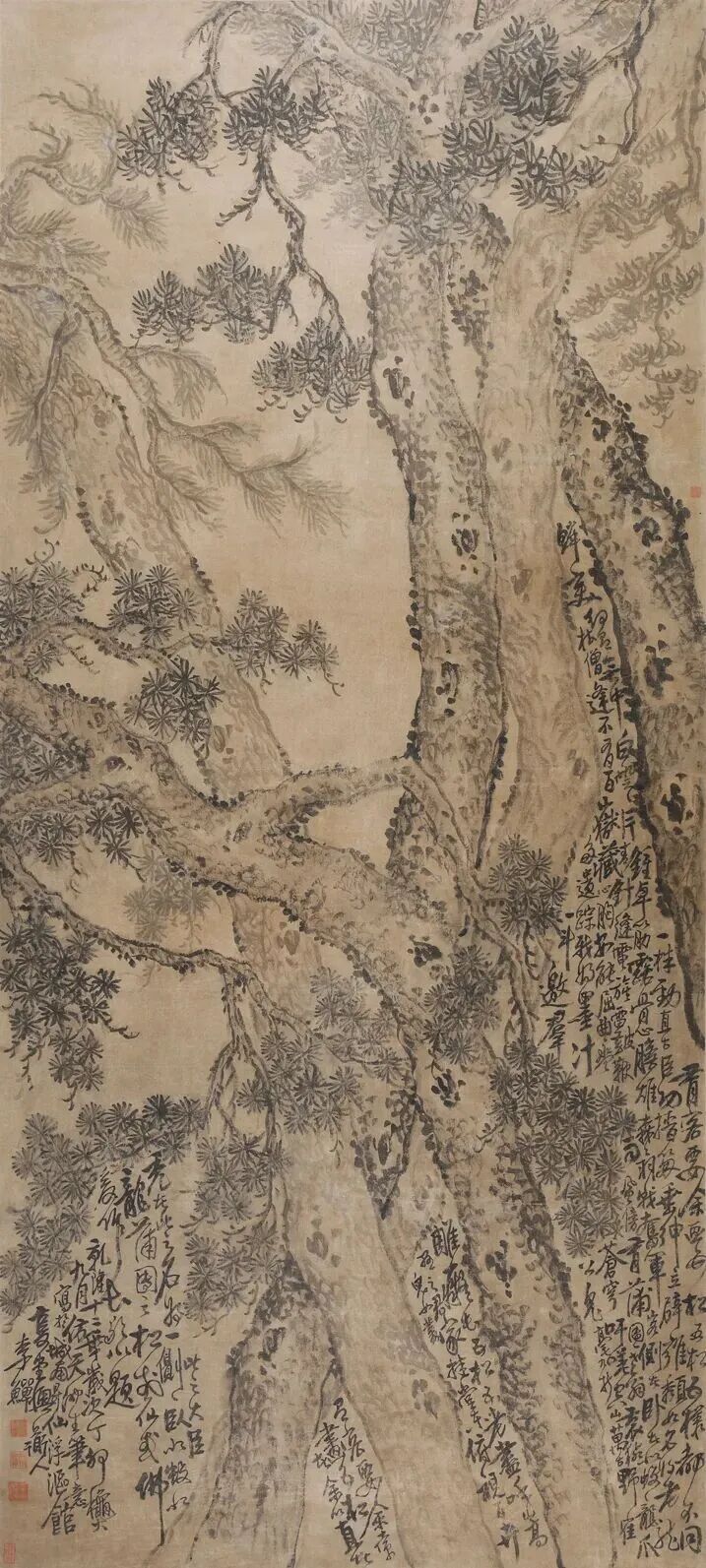 清 李鱓 五松图 纵193厘米 横86厘米 绢本设色