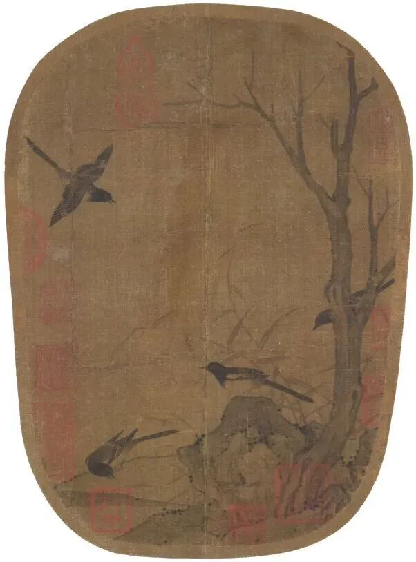 宋人画册 古木鸣禽图 纵22厘米 横16厘米 绢本设色