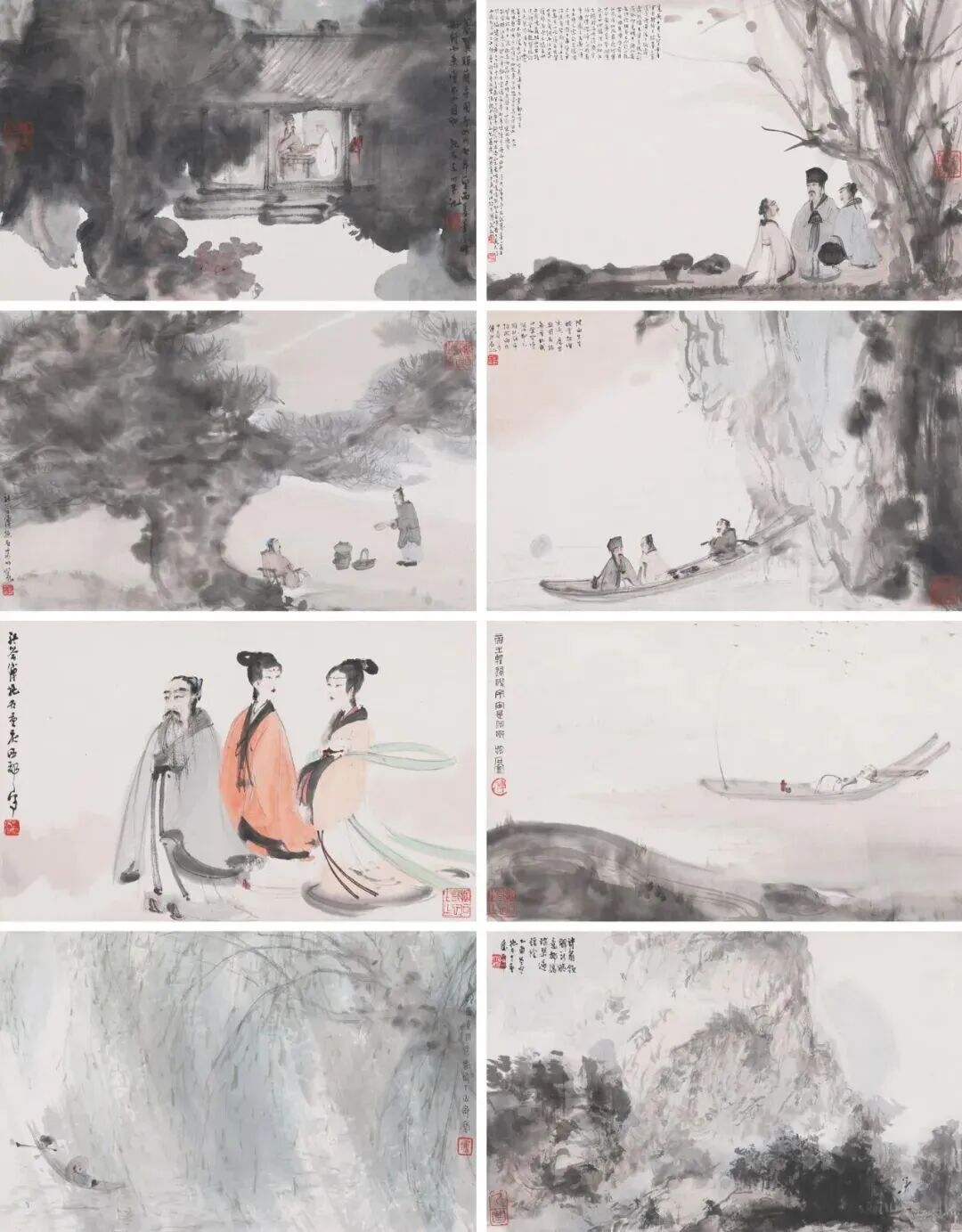 傅抱石 山水人物册 纵25厘米 横40厘米 纸本设色