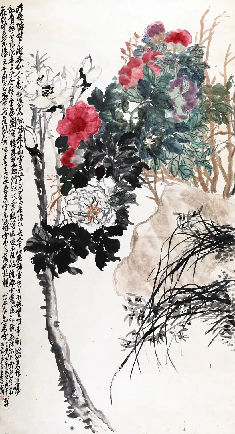 吴昌硕 玉堂春韵图 纵172厘米 横93厘米 纸本设色