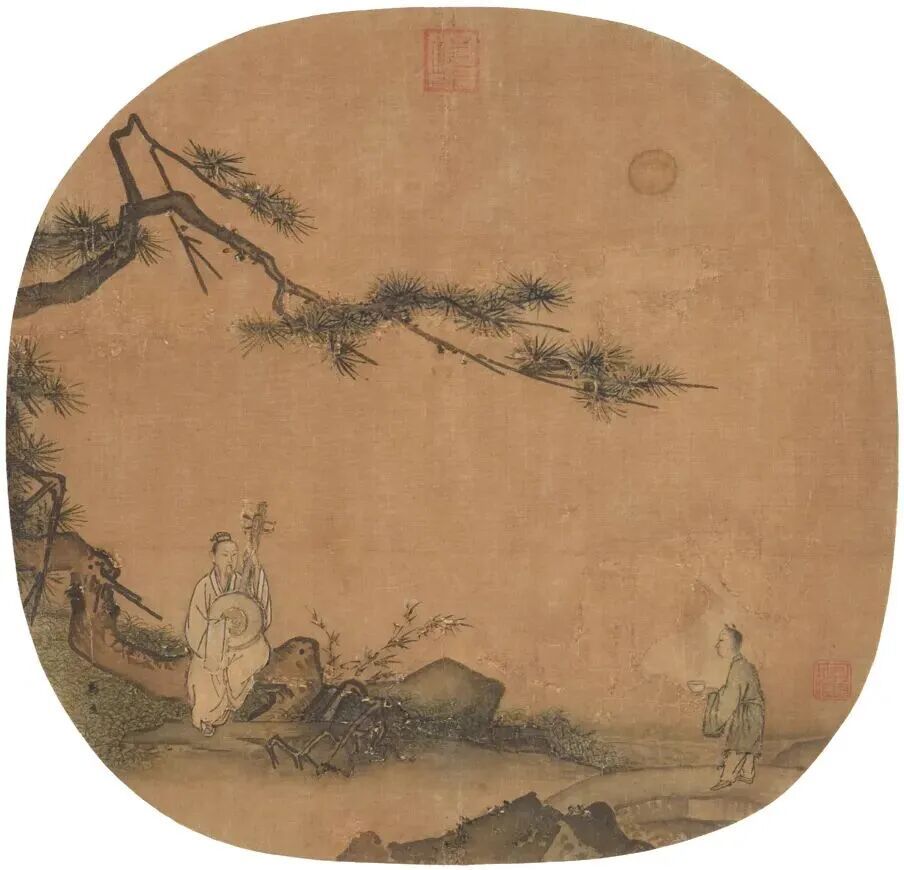 宋人画册 月下拨阮图 纵24厘米 横25厘米 绢本设色