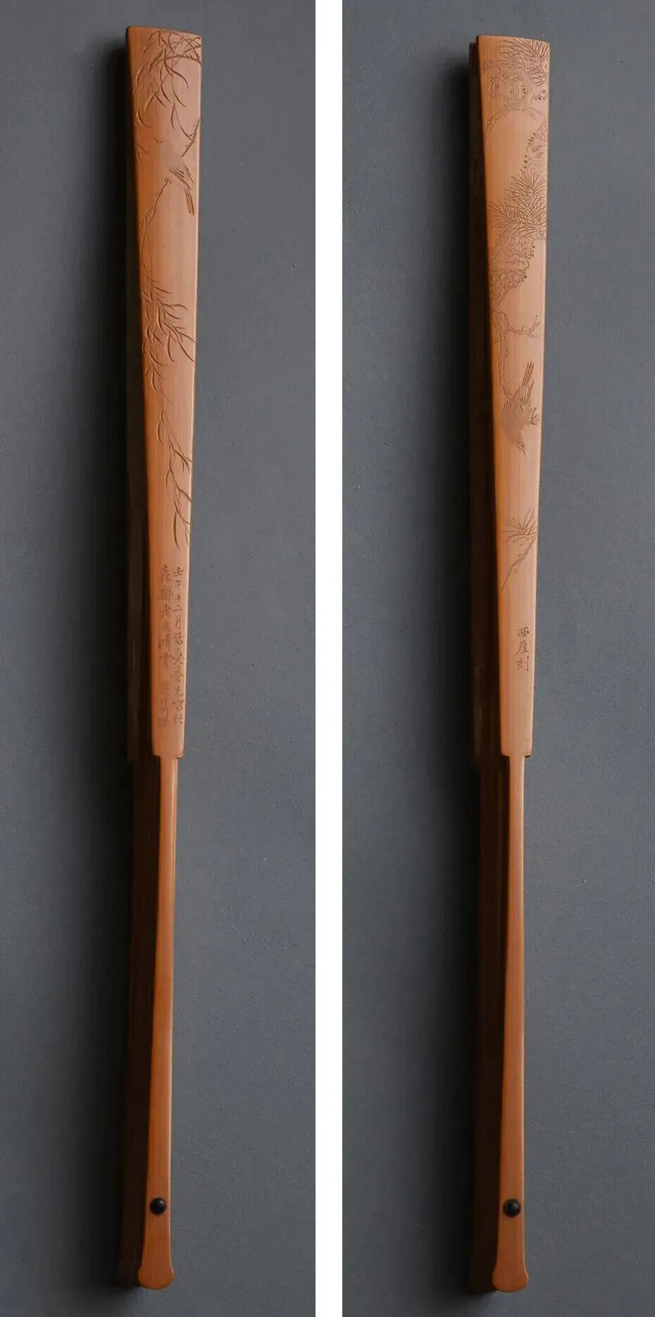 金西厓 刻江寒汀花鸟扇骨 九寸半 十六方 玉竹