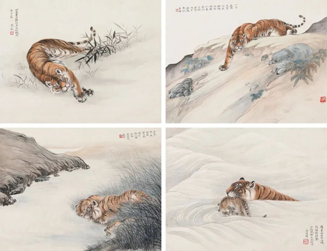 张善孖 山君册(十二开选四) 纵29厘米 横38厘米 纸本设色