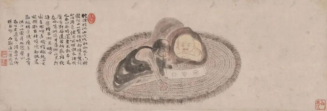 清 髡残 自跋禅机图卷 纵21厘米 横201厘米 纸本设色