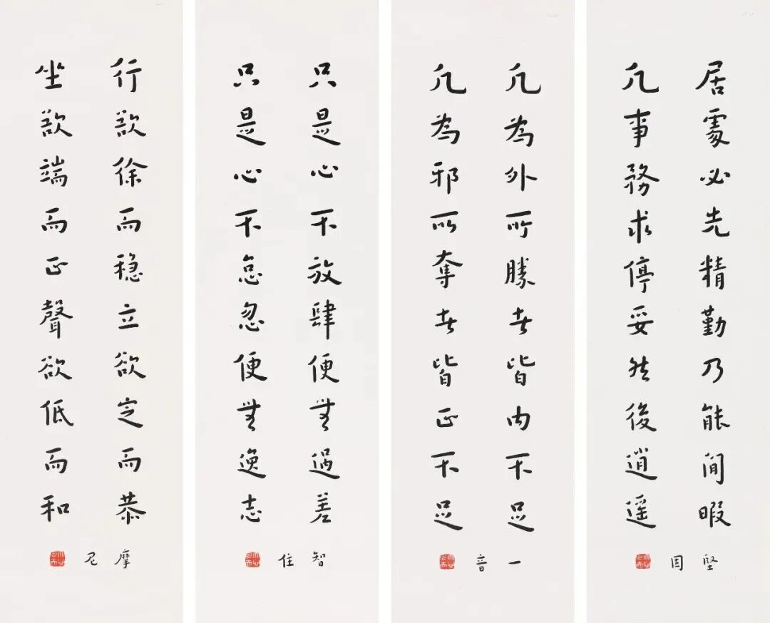 弘一 格言四条屏 纵50厘米 横15厘米 纸本水墨