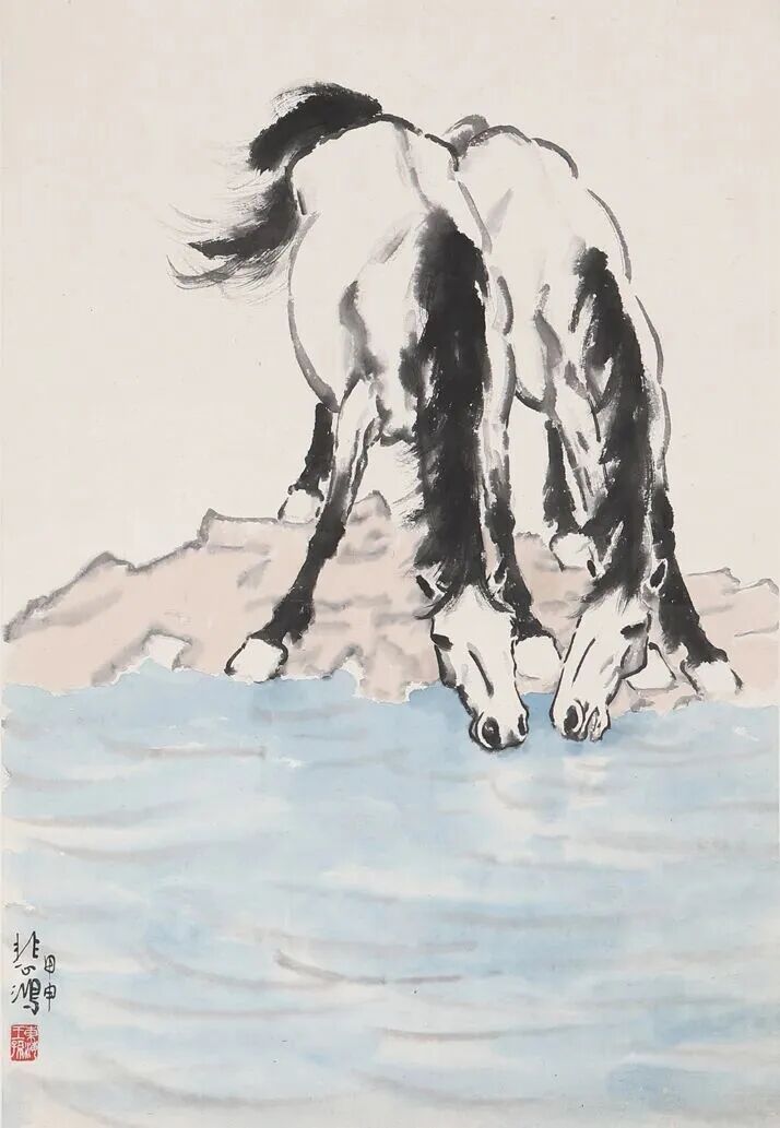 徐悲鸿 渊渟 纵67厘米 横46.5厘米 纸本设色