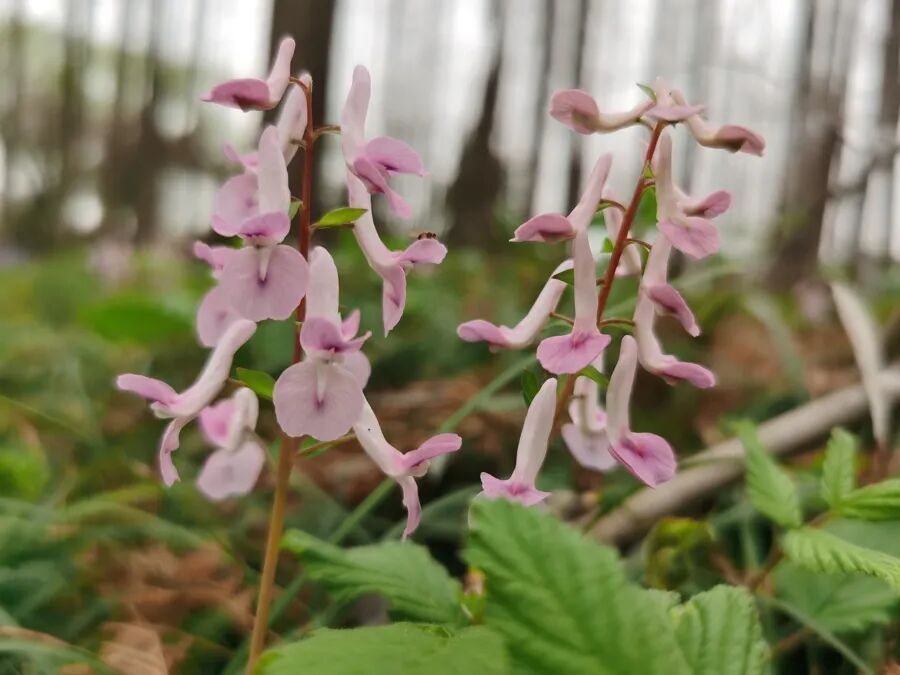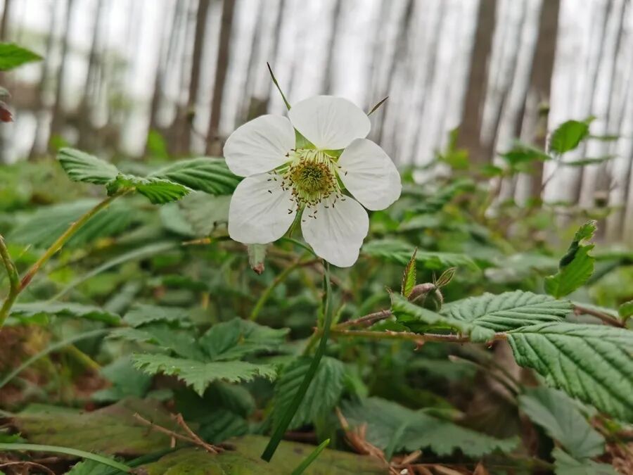 走进长宁外环生态绿道的水杉林区域,林下除了二月兰,还有白色和粉色的小花,白花正是蓬蘽,是上海的本土植物。蓬蘽眼下正值花期,清甜的香气吸引蜜蜂前来传粉。待到春末夏初,它会结出红彤彤的果实,成为鸟类与松鼠的重要口粮。粉色的则是夏天无,花如其名,冬天发芽生长,春天开花结果,一到夏天,地上部分便完全枯萎。这种独特的生活方式,为早春活动的昆虫提供了关键的花蜜来源,同时其地下形成的密集块茎网络,还发挥着防止水土流失的生态功能。