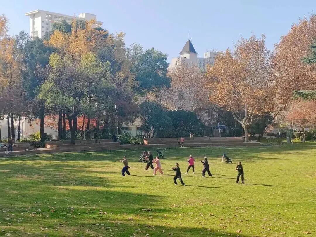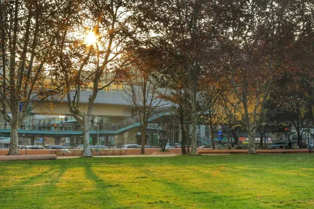 在天山公园,进口的“杂交百慕大”被南京农业大学培育的狗牙根“南农1号”替代。据区绿化管理事务中心副主任魏峰介绍,“南农1号”在弱光环境下仍能保持茂密青翠,踩踏受损后封闭一周左右即可恢复。养护得当的话,它可以青翠至11月底,次年3月返青,枯黄期极短。这一国产草种的推广应用,不仅降低了养护成本,更增强了城市绿地的生态韧性。