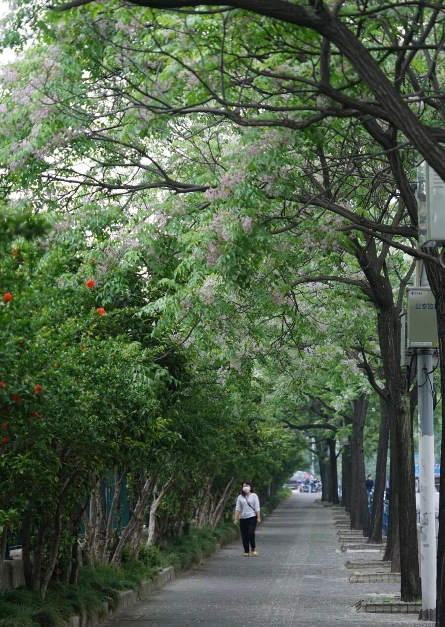 近年来,长宁区积极推动乡土植物的应用。中新泾公园哈密路段的行道树便选用了苦楝,这种在我国分布极广的落叶乔木,在上海却并不多见,此前仅有杨浦区吉浦路、静安区阳城路等少数路段规模种植。苦楝的回归,是上海城市绿化理念转变的一个缩影。