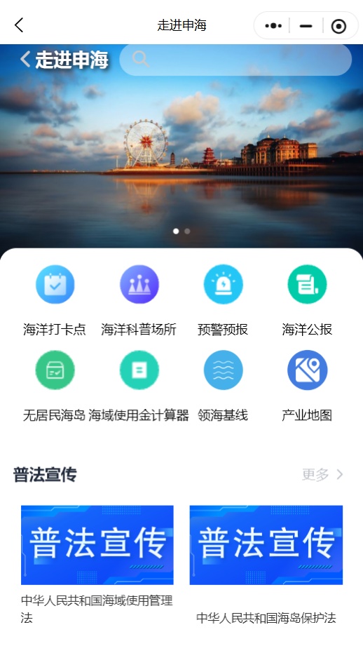 打造水务海洋特色公共服务。新增上线“走进申海(海洋综合信息服务)”特色服务,打造海洋行业集成式公共服务模块,为涉海企业、群众提供全方位信息支持;持续升级“幸福河湖”水利公共服务,共享“美丽河湖”建设成果。感受城市水务之美。同时,新增“河湖综合信息查询”“排水接入条件查询”“河湖管理养护问题有奖举报”等服务,向市民群众推送台风、海浪等消息预警。