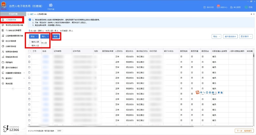 1.【人员信息采集】填写要申报的全部人员信息后,点击上方“报送”,自动获取反馈。