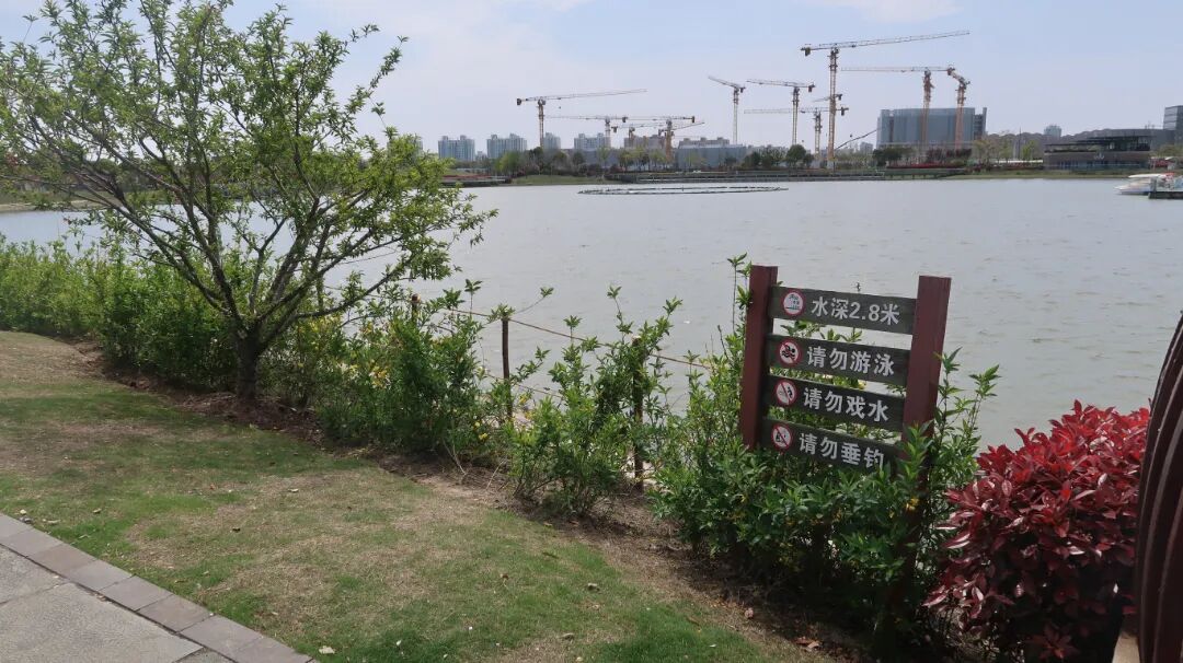 今天(4月8日)上午,记者在汇龙湖公园湖边看到,原本较为开放的亲水区域,沿岸已加装起一圈护栏,对临水空间进行了有效隔离,也为市民活动划出了一道安全边界。