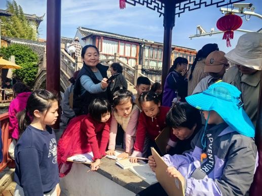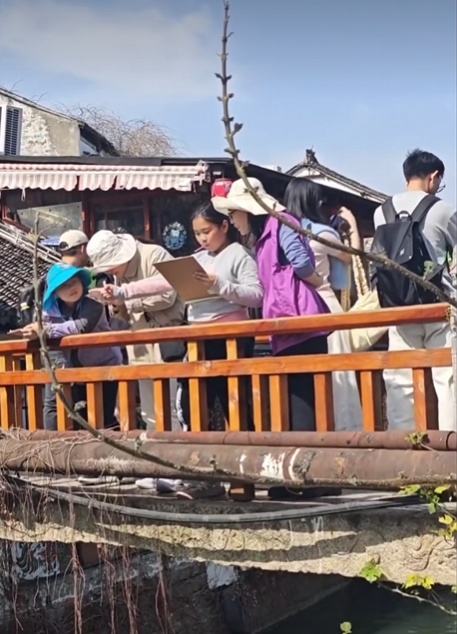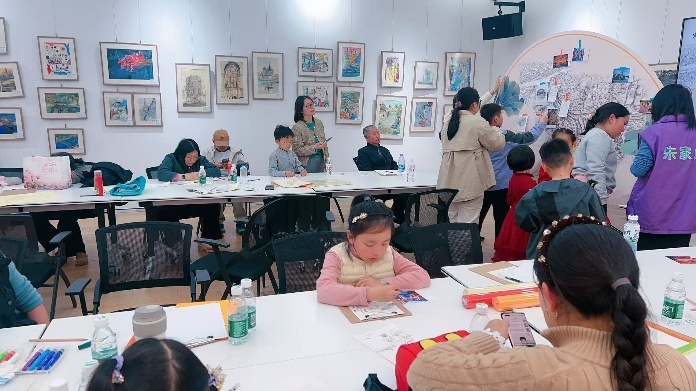 作为本次活动的核心环节,“沪派江南·绘韵角里”特邀业界知名画家刘开海、历史文化学者黄数敏全程带队。下午时分,放生桥畔、漕港河旁,一群手持画板的孩子们成了古镇最动人的风景线。两位老师将课堂搬进实景,带领孩子们漫步于弥陀湾、驻足于永丰茶楼,引导大家细致观察青瓦白墙的肌理、乌篷船的摇曳轨迹以及石拱桥的透视关系。